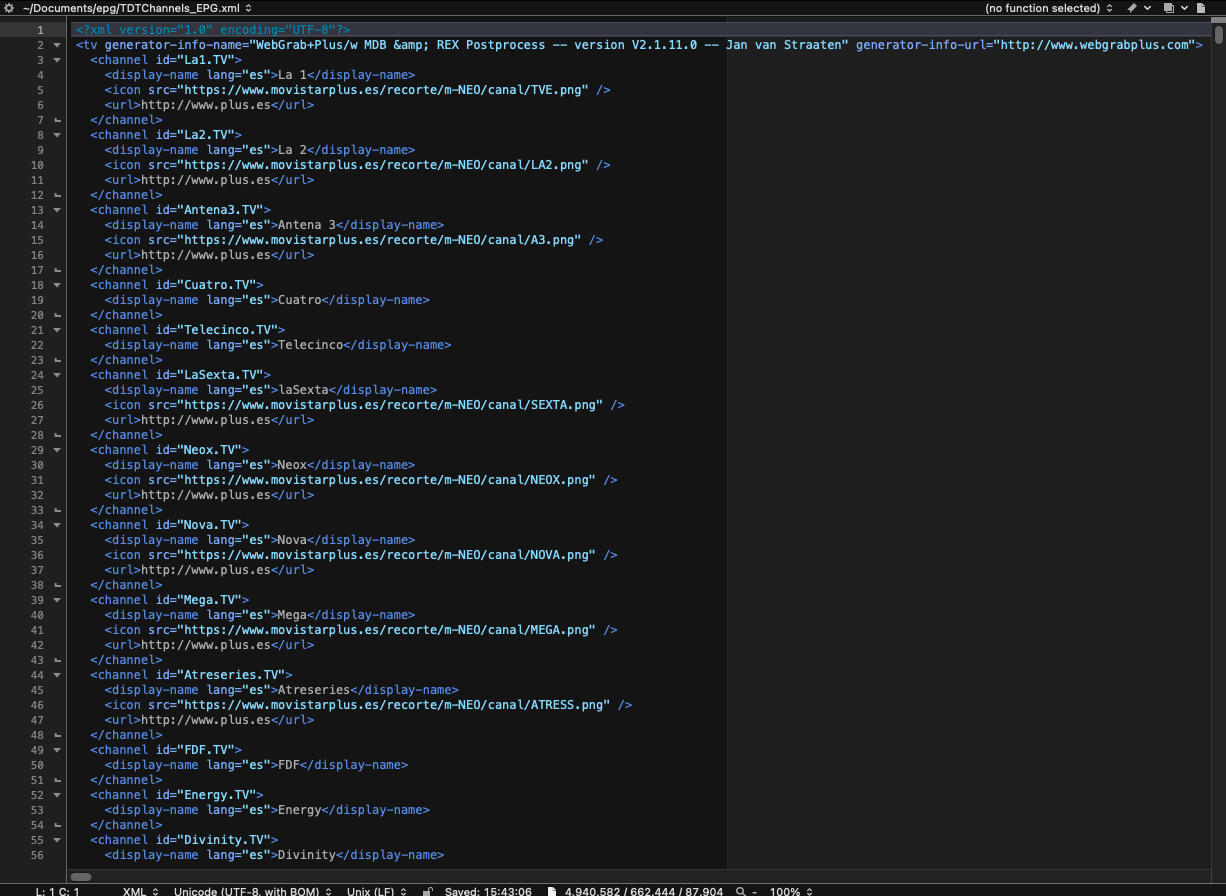 a) En primer lugar debemos saber el id de los canales que usa tdtchannels para generar el epg, para ello nos descargamos el epg de su web oficial : https://www.tdtchannels.com/epg/TV.xml.gz