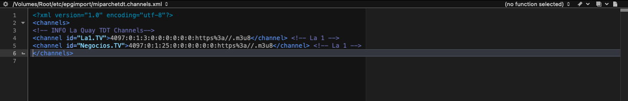 Para el que lo quiera os dejo como base el archivo channels con dos canales parcheados en este ejemplo La 1 y negocios: