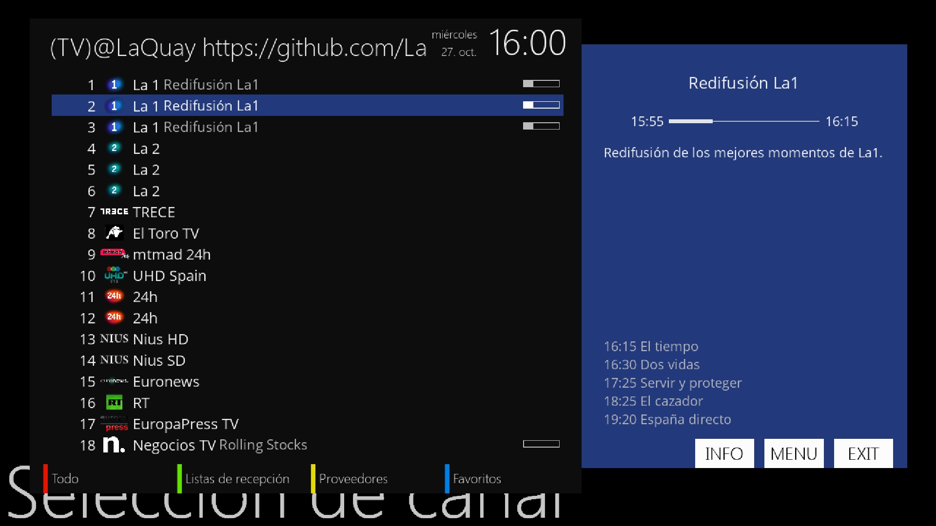 Tras pulsar amarillo para descargar el epg ya tendremos el epg en los canales que hemos parcheado.