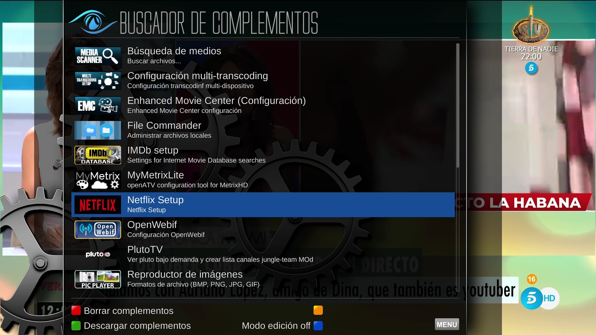 Una vez hemos configurado el plugin con la url de jungle-team, para arrancarlo pulsamos en menu + netflix