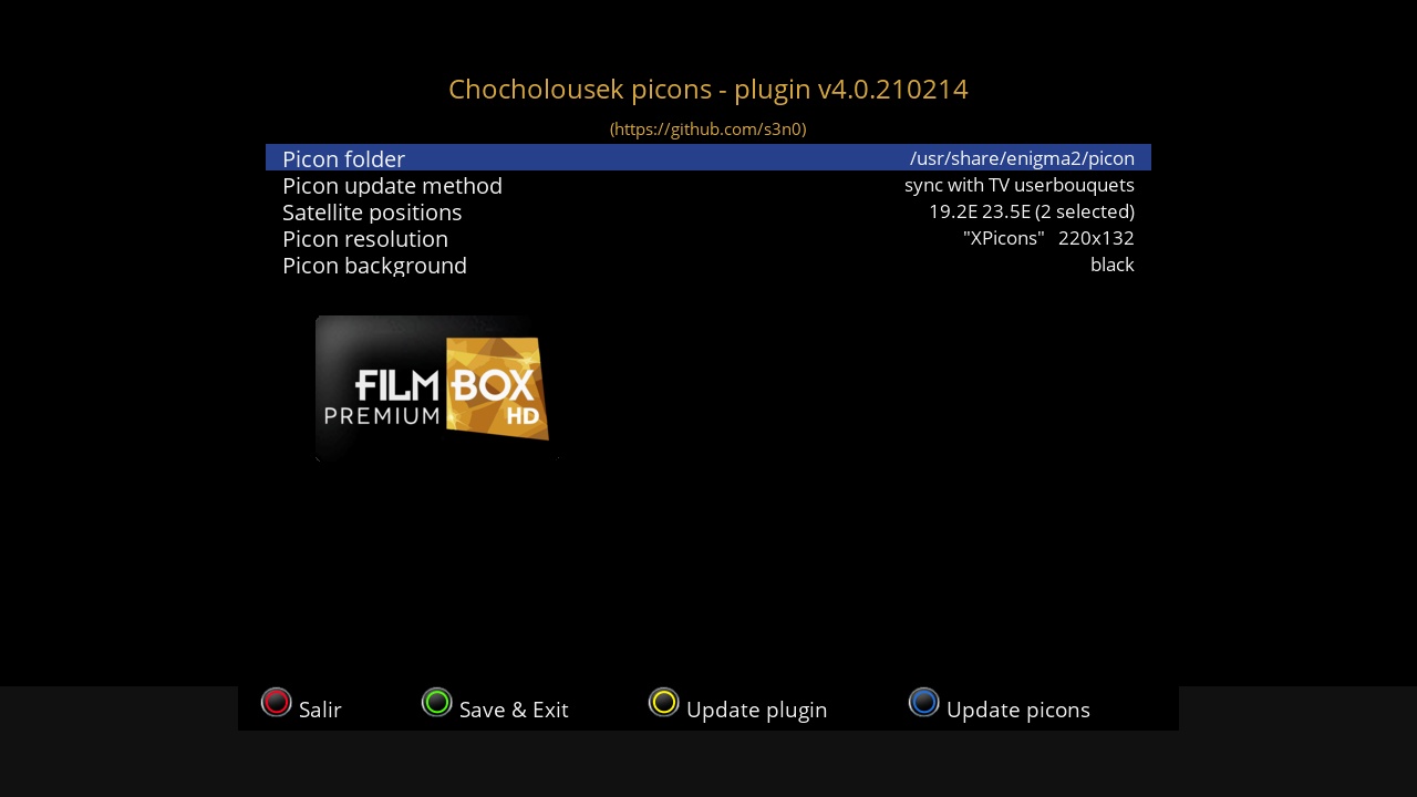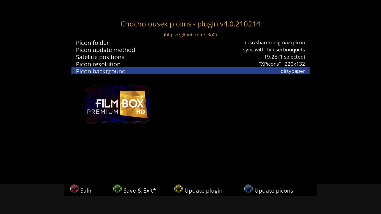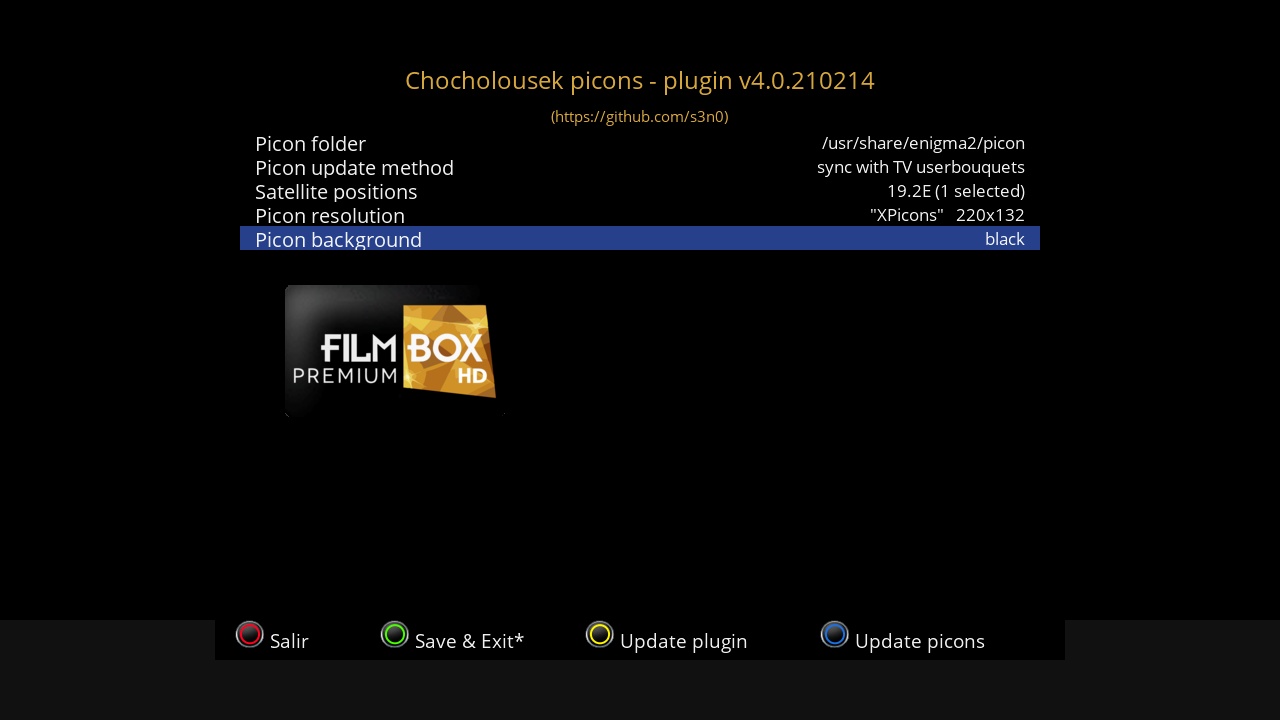 Pagina Oficial del plugin: https://github.com/s3n0/e2plugins/tree/master/ChocholousekPicons