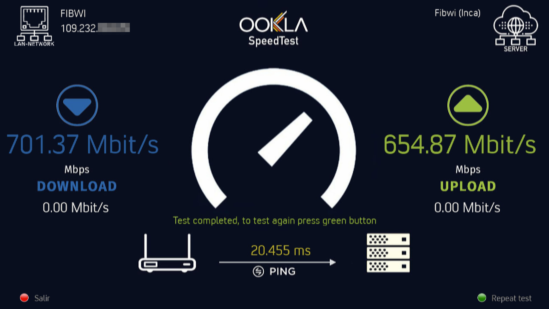 Al finalizar nos mostrara la velocidad de nuestro receptor: