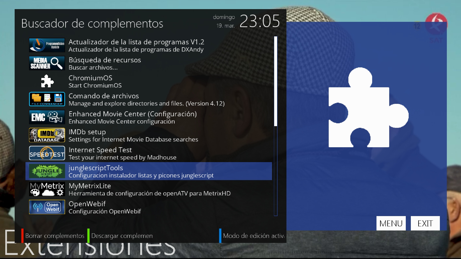 Es necesario tener los repositorios jungle-team en el receptor, ahora simplemente podemos realizar la instalacion desde el menu plugins seleccionando su instalacion o desde terminal ejecutando: