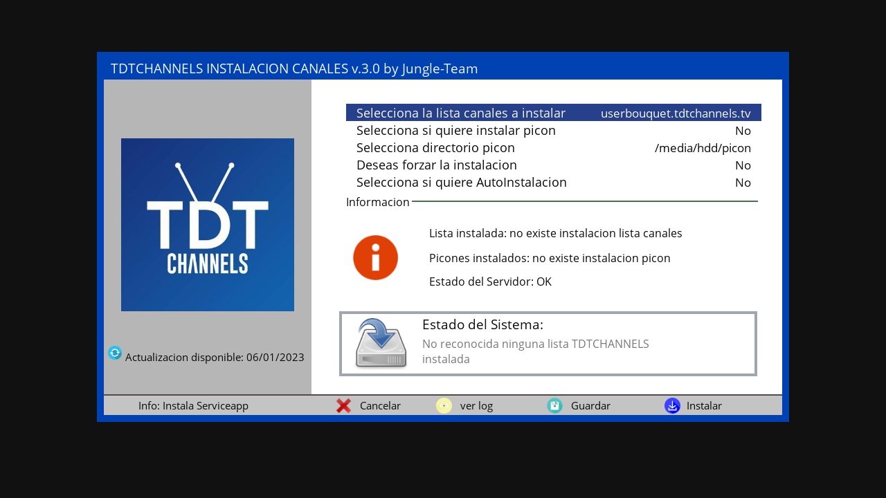 - Mas informacion plugin: https://jungle-team.com/plugins-tdtchannels-enigma2/