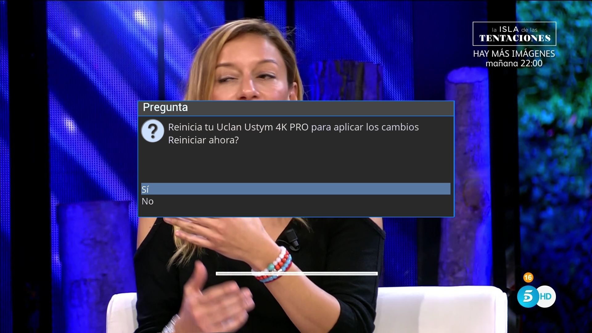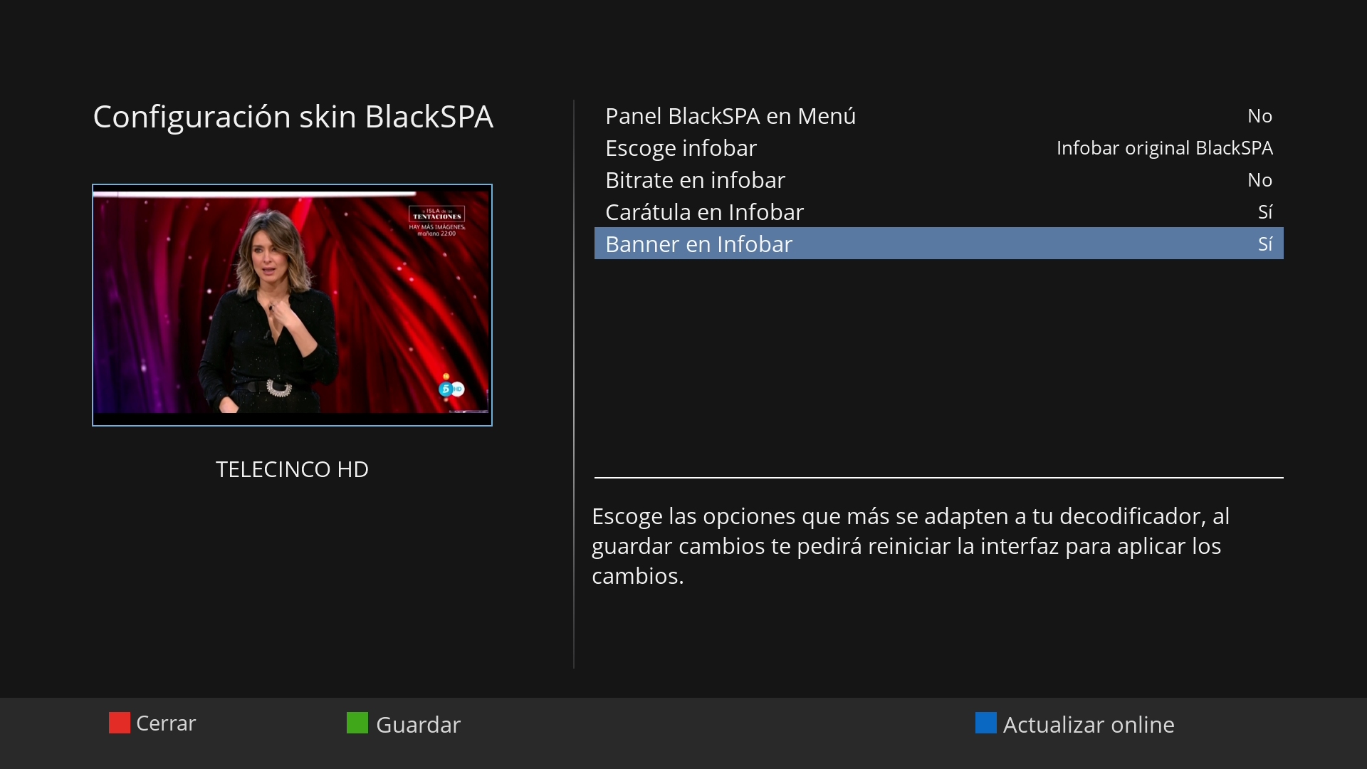 Pulsamos en boton verde (Guardar) para activar los cambios, esta activacion la primera vez que se realiza ademas te instala el plugin XtraEvent y nos solicitara reiniciar el receptor, seleccionamos en si.