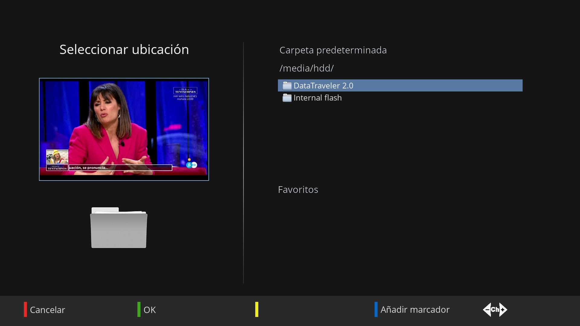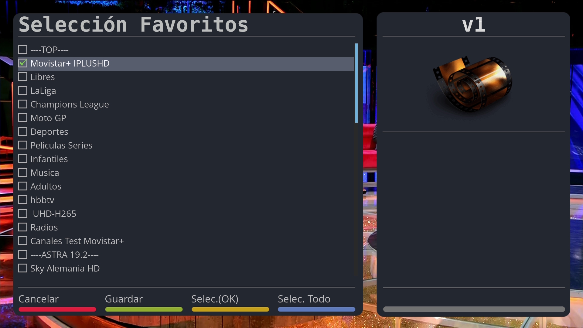 Ahora pulsamos boton verde (busqueda) para seleccionar el favorito o favoritos de los que deseamos realizar descargas y lo marcamos en este caso el de movistar