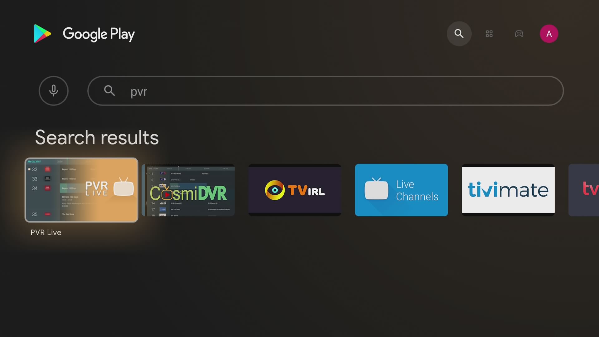 Una vez instalado nos aparecera PVR LIVE en el launcher para ejecutarlo