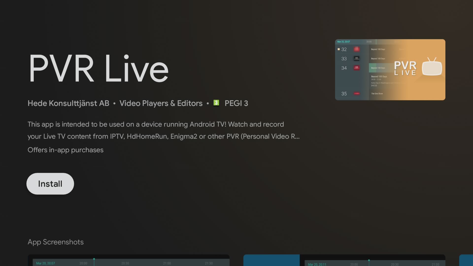 PVR Live para Android TV es un reproductor IPTV a traves del cual podemos visualizar mediante streaming los canales de nuestro receptor enigma2.