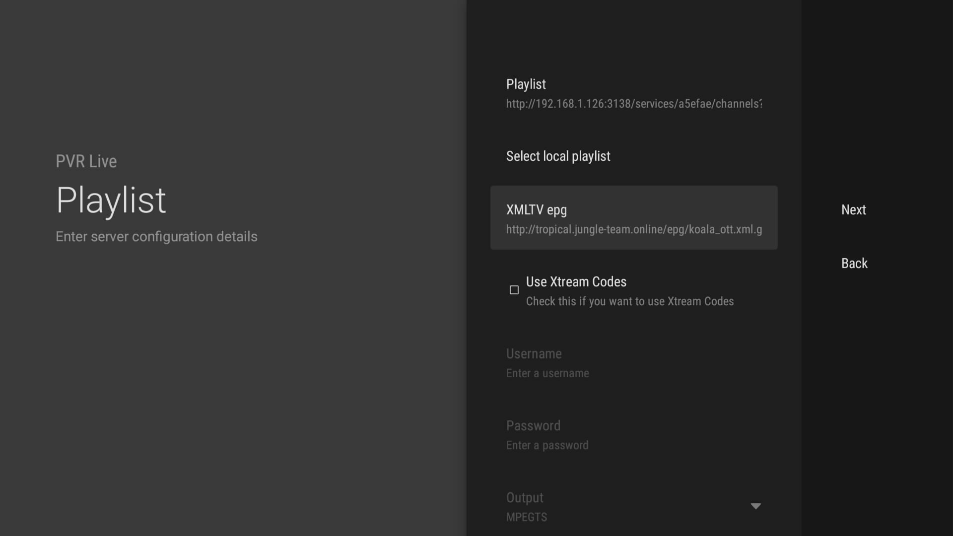 Tras introducir la url de los canales, a continuacion introducimos la url del epg koala que vimos al principio