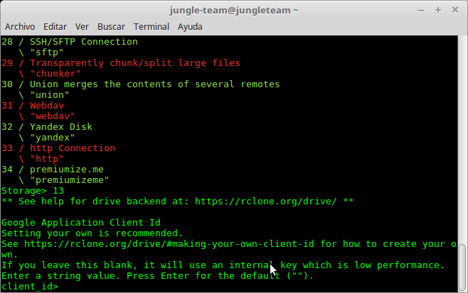 Una vez instalado rclone vamos a ver como configurar rclone para sincronizarlo con nuestra cuenta Google drive para ello por consola terminal ejecutamos: