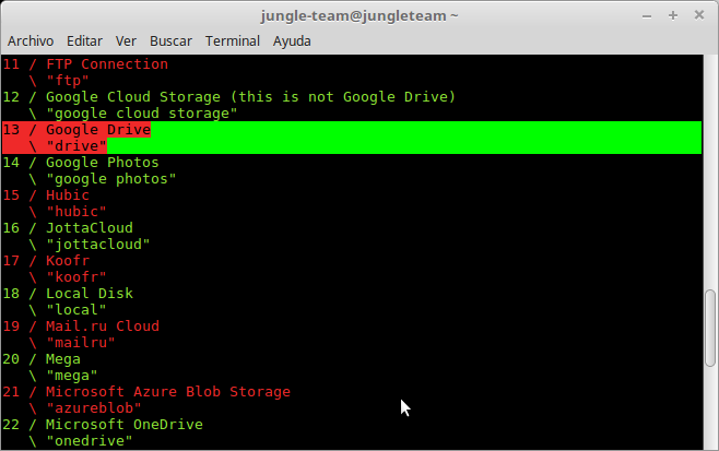 Donde jungleteam es el nombre que pusimos al configurar rclone y discovirtual es la carpeta que hemos montado