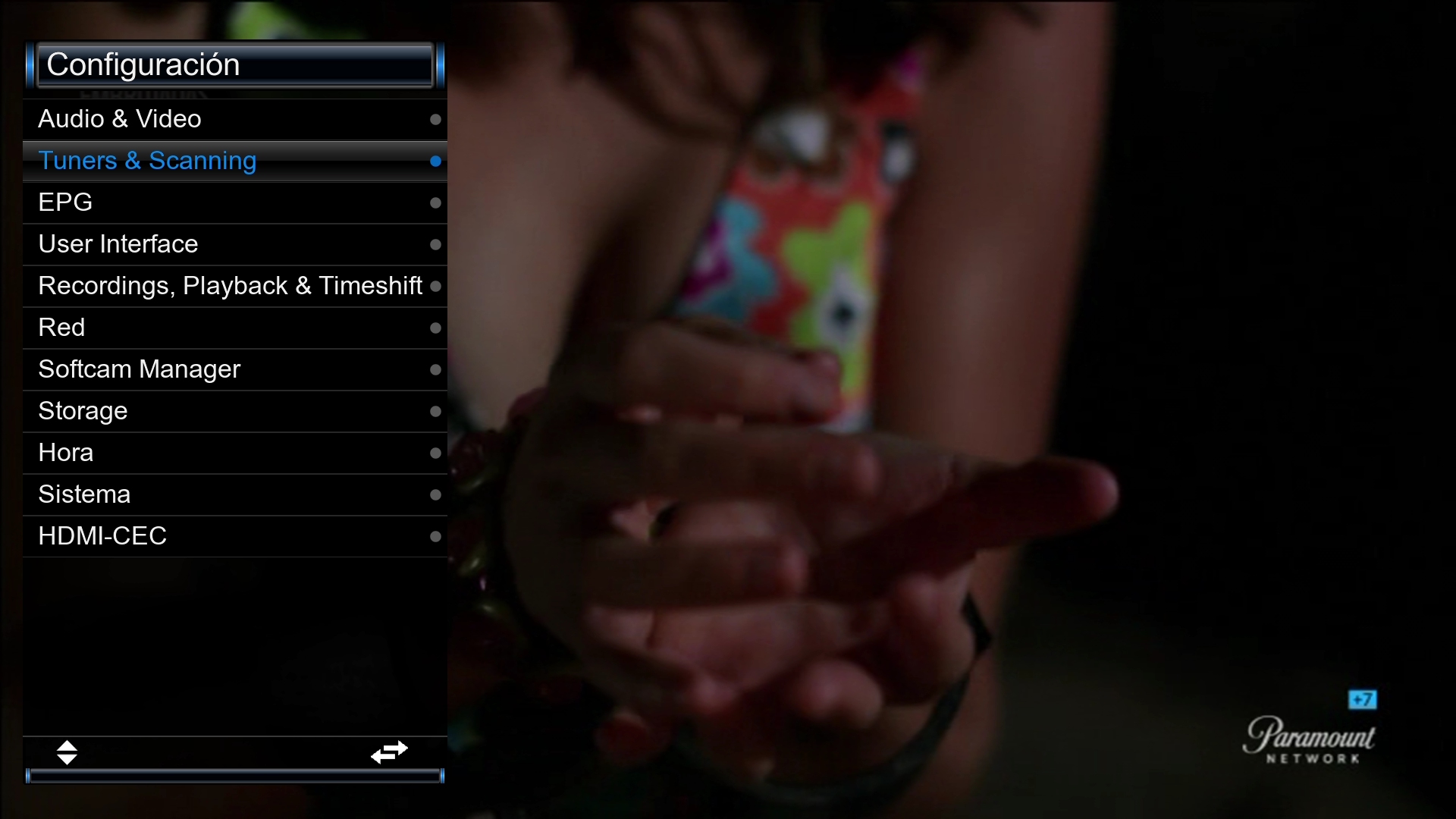 1. Pulsamos en menu + configuracion + Tunners & scanning