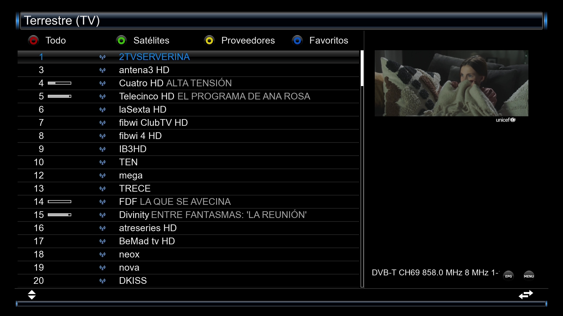 5. Al finalizar ya tendremos nuestros canales tdt buscados y favorito enigma2 de canales terrestres creado conforme a nuestro proveedor