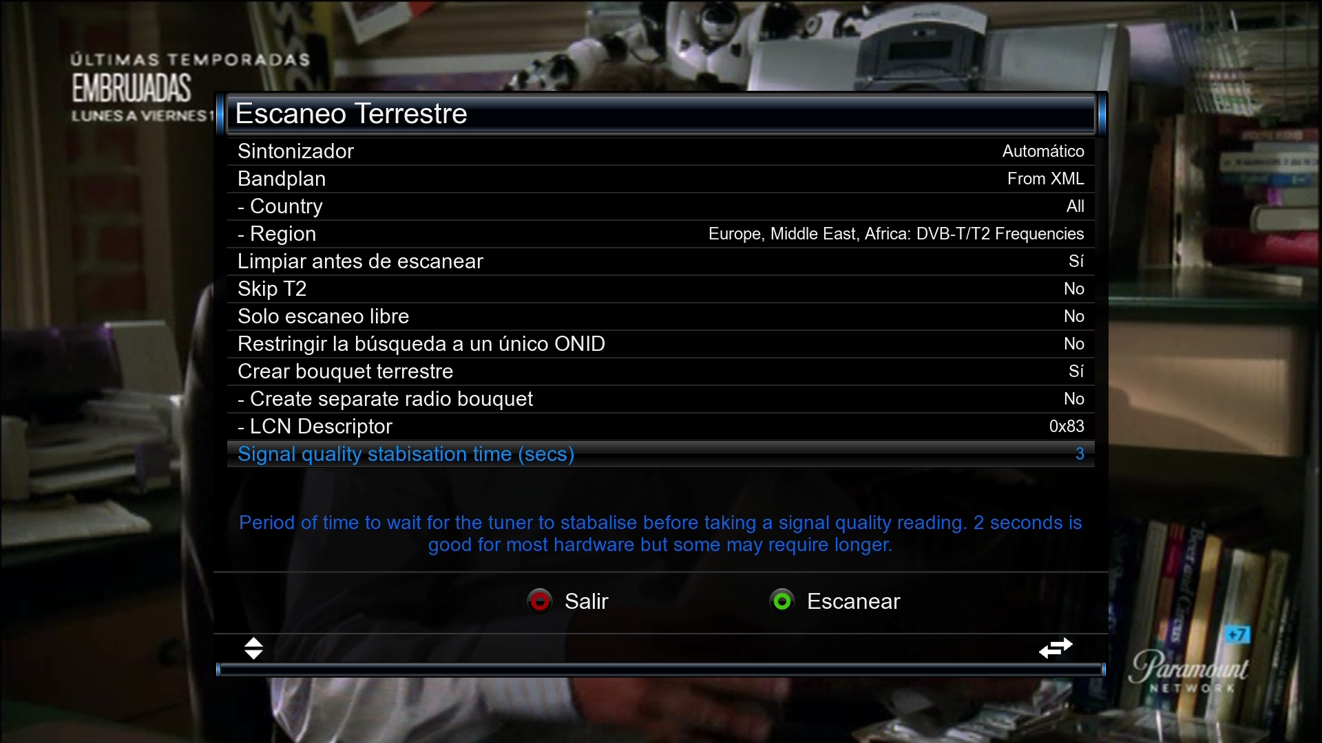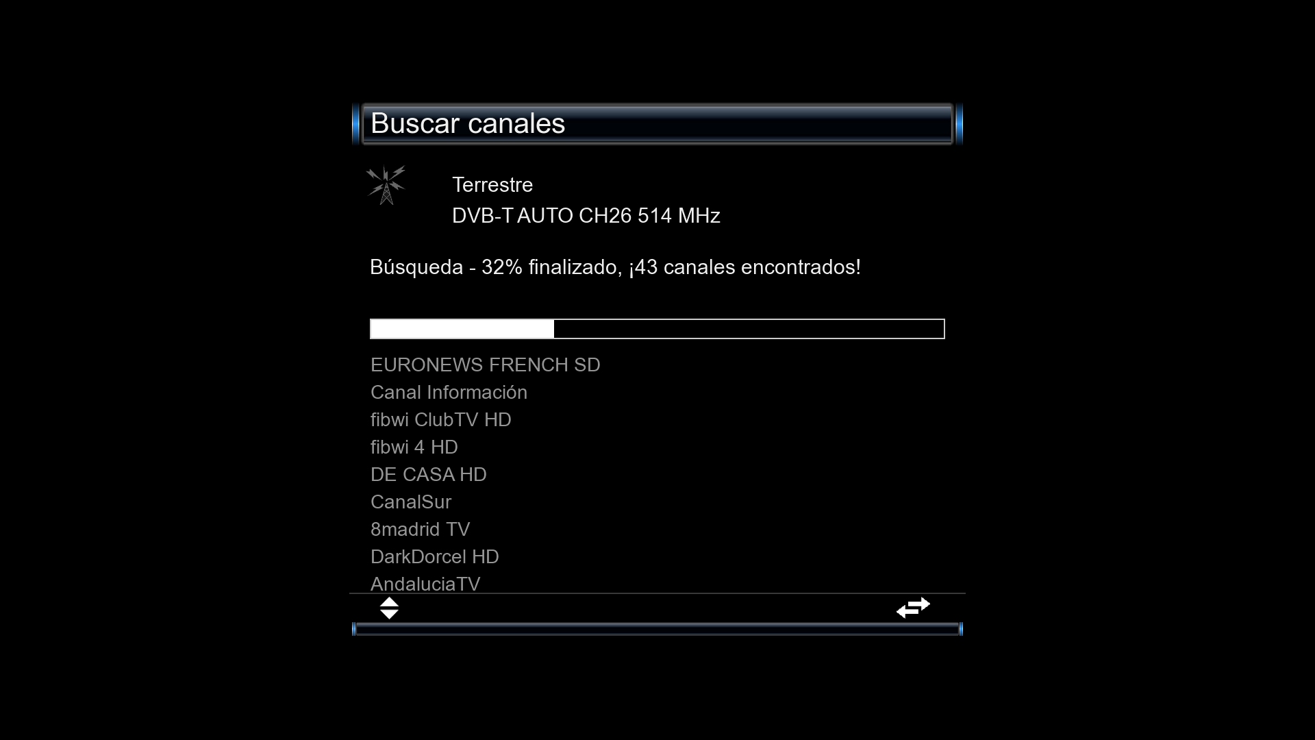 4. Una vez configurado pulsamos en boton verde escanear y comenzara la busqueda de canales: