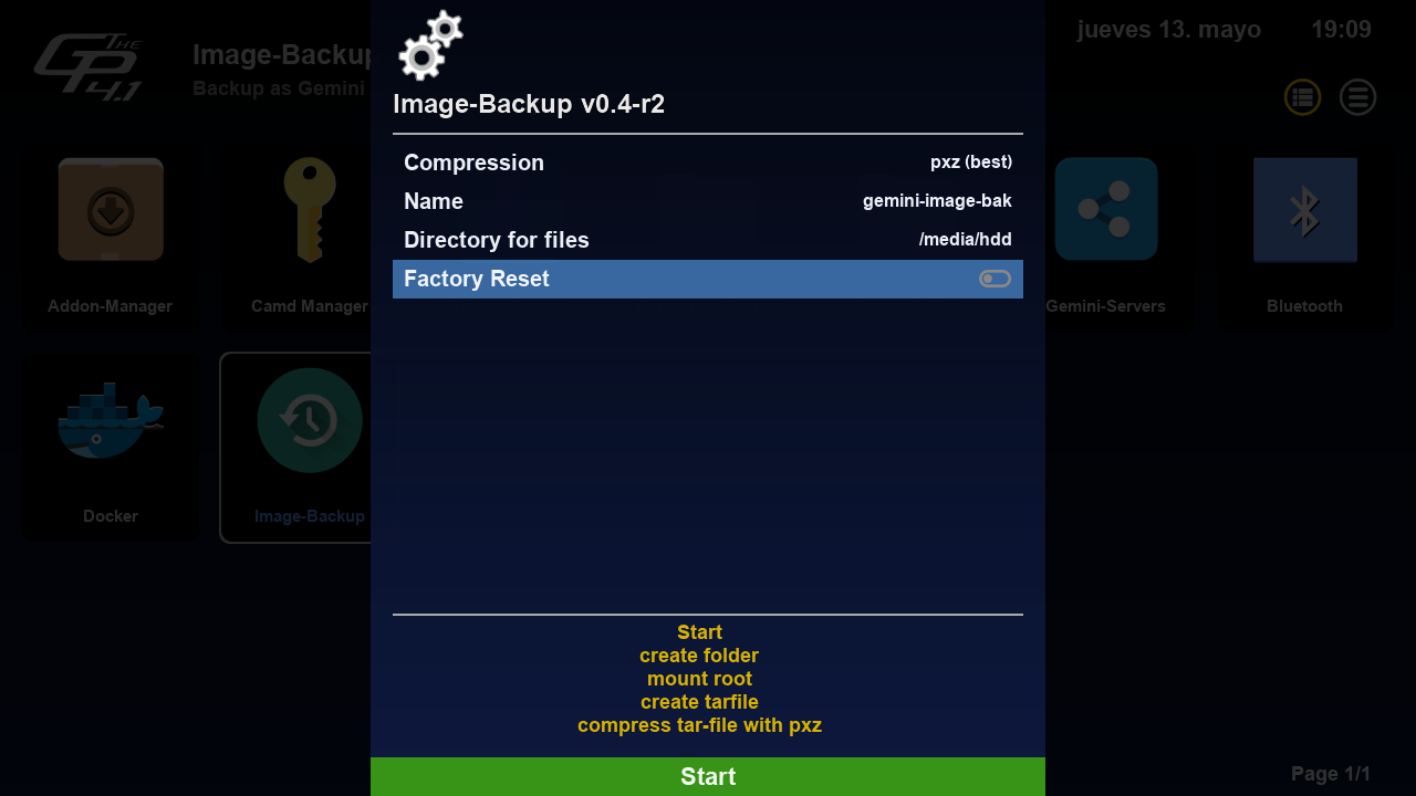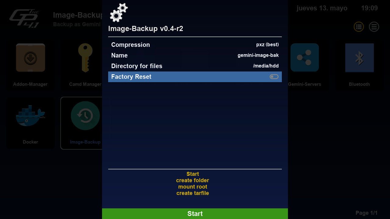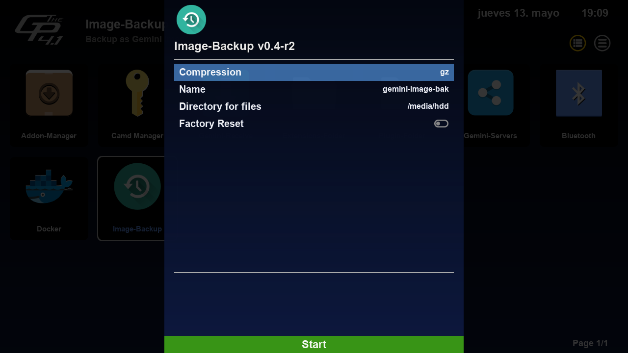 Nota: Requisito previo tener instalado el plugin de Gemini Image-Backup