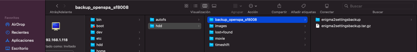 De este modo podemos tener una copia de seguridad de archivos que podemos restaurar en cualquier momento o durante el wizard de instalación de la imagen openSpa tras instalar una imagen nueva.