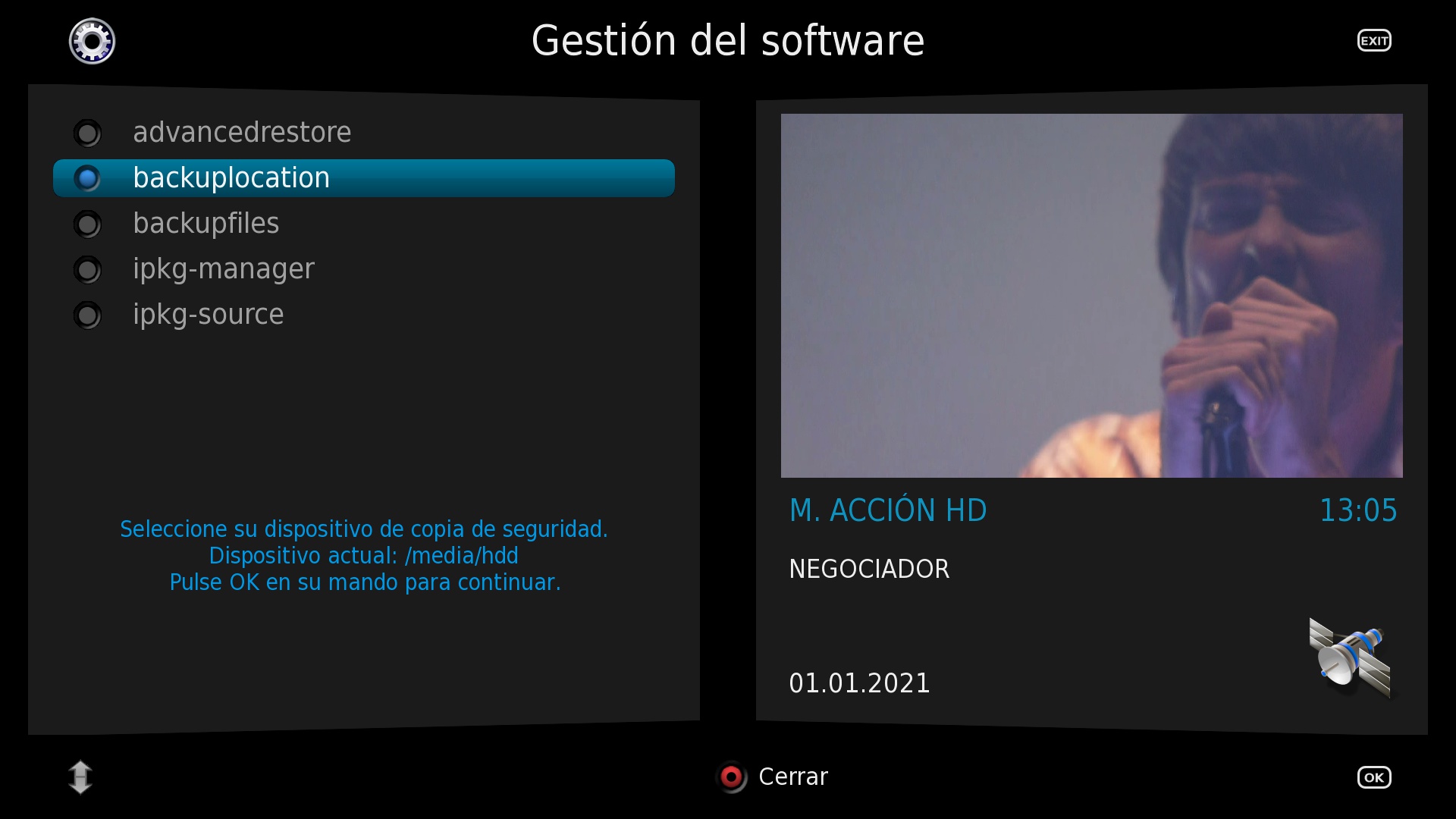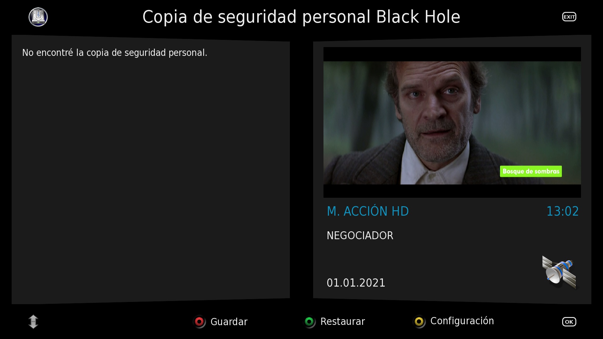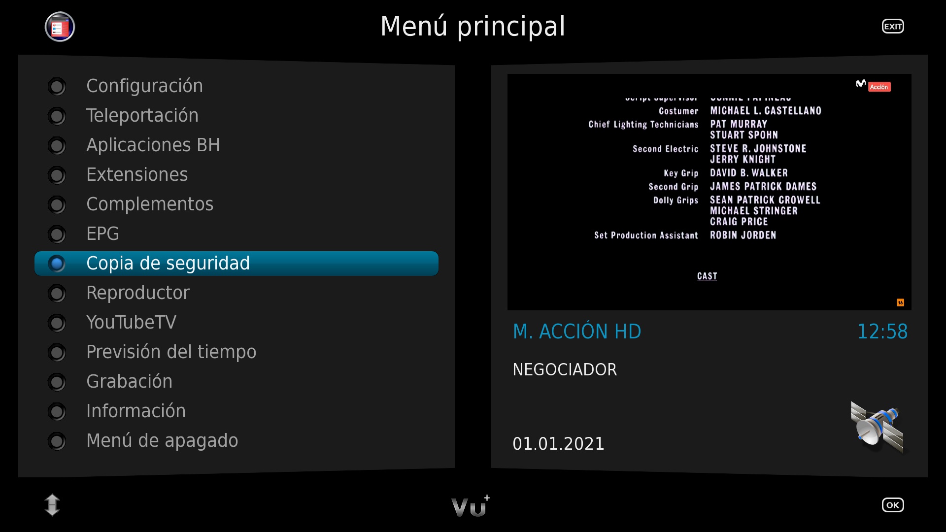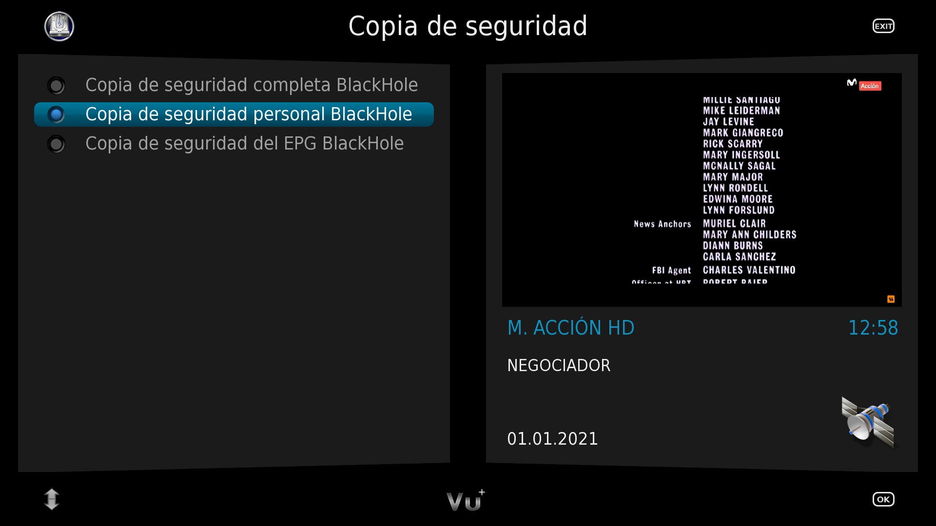 En imagen Blackhole para receptores vuplus es posible realizar copia de seguridad de la configuración de archivos y plugins instalados a traves de dos formas: