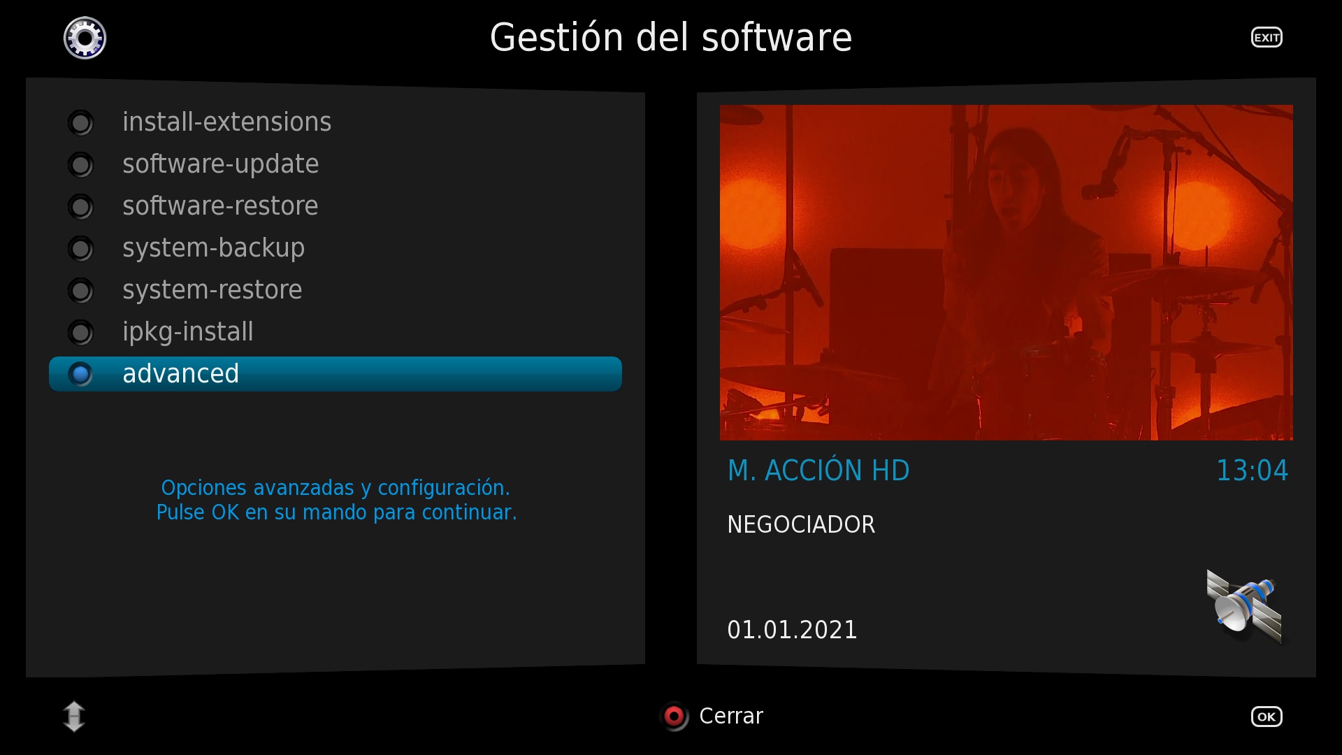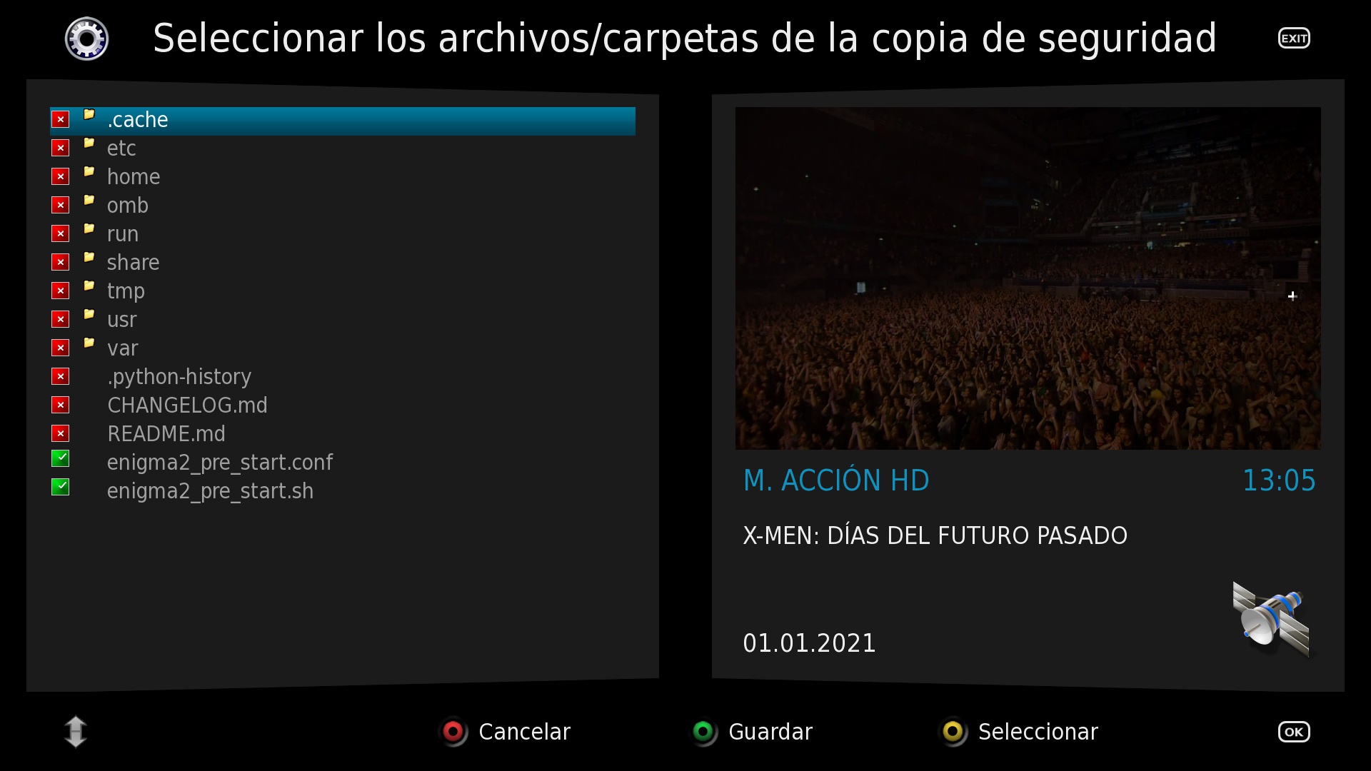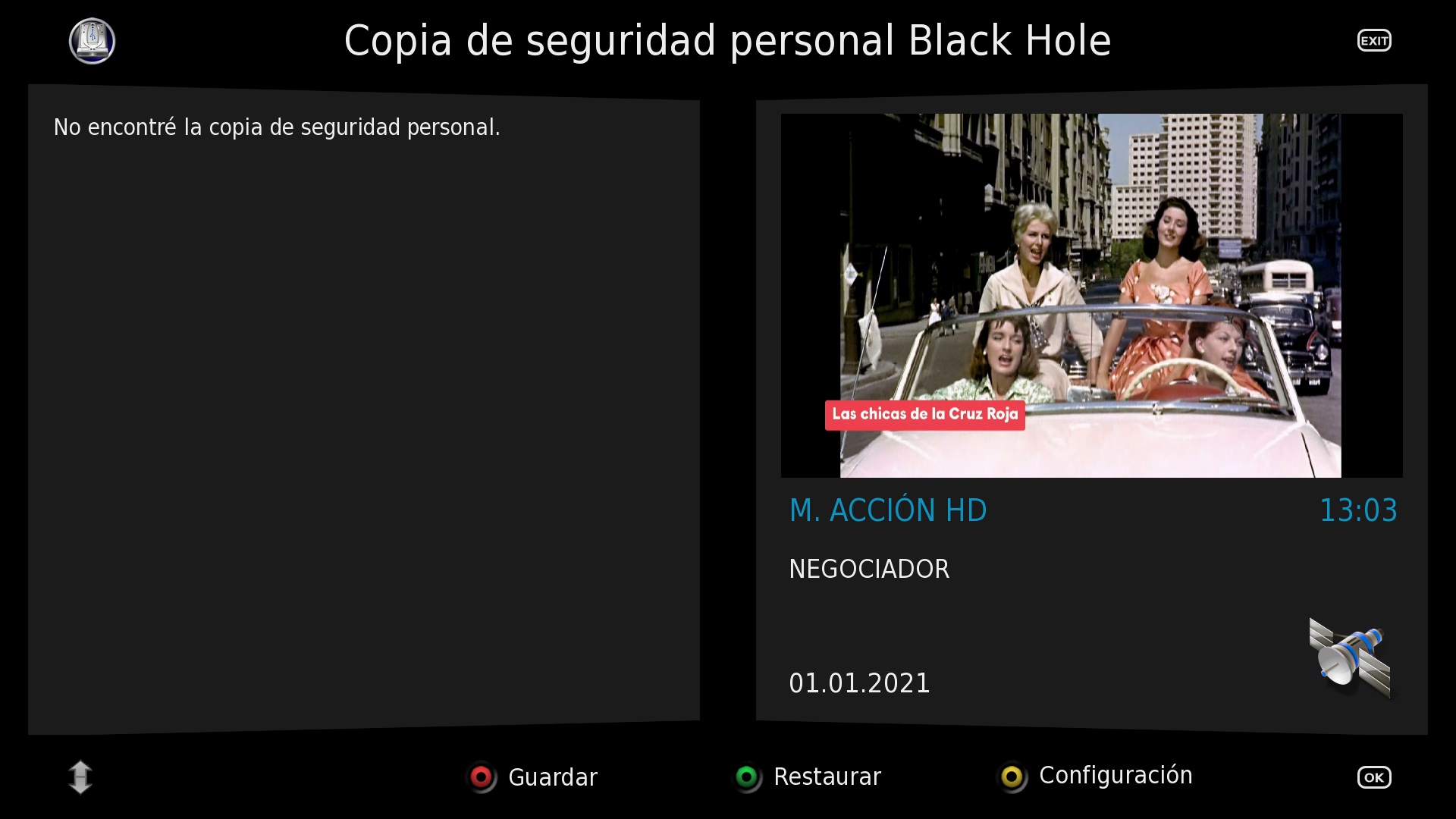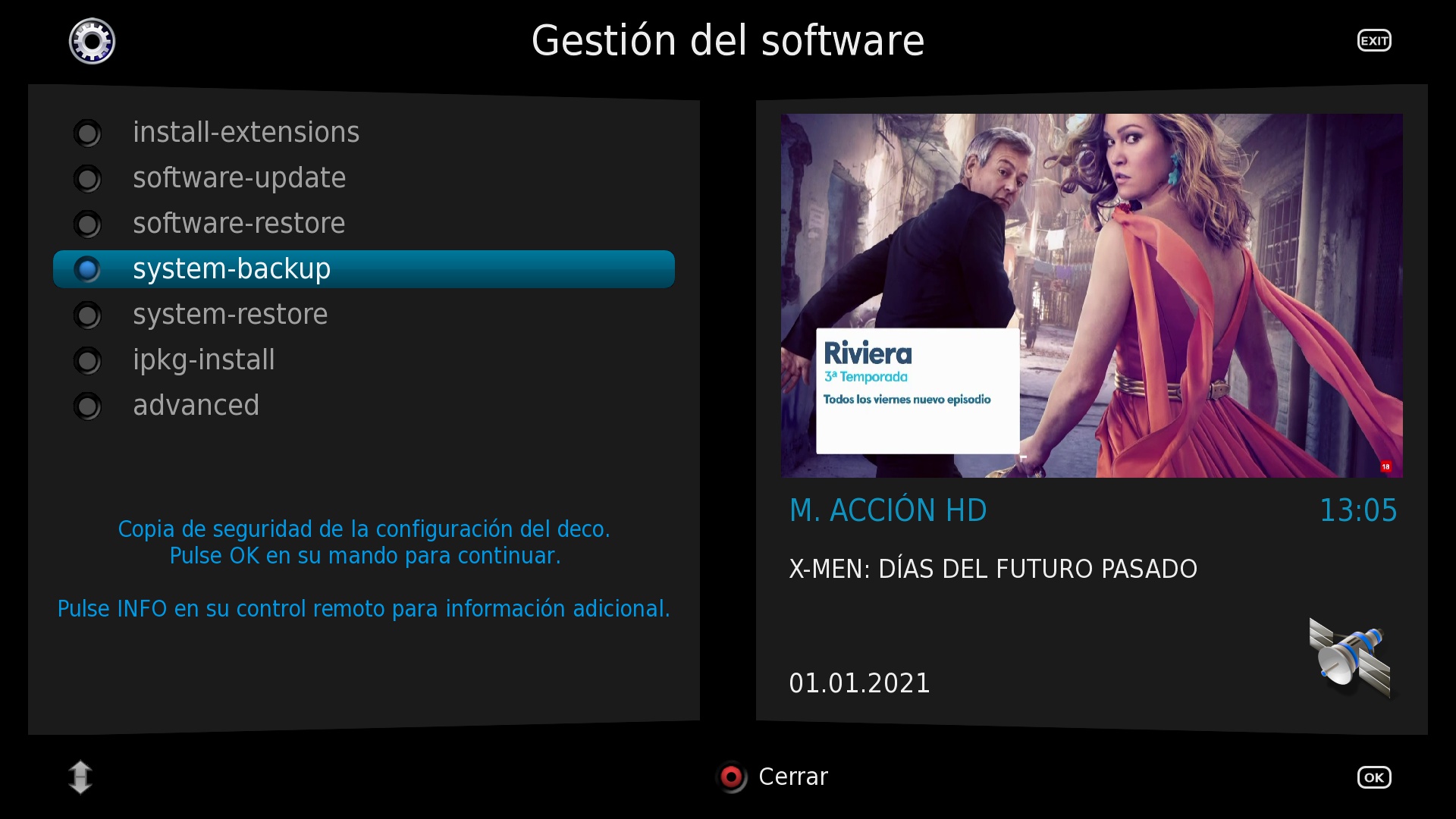 En imagen Blackhole para receptores vuplus es posible realizar copia de seguridad de la configuración de archivos y plugins instalados a traves de dos formas: