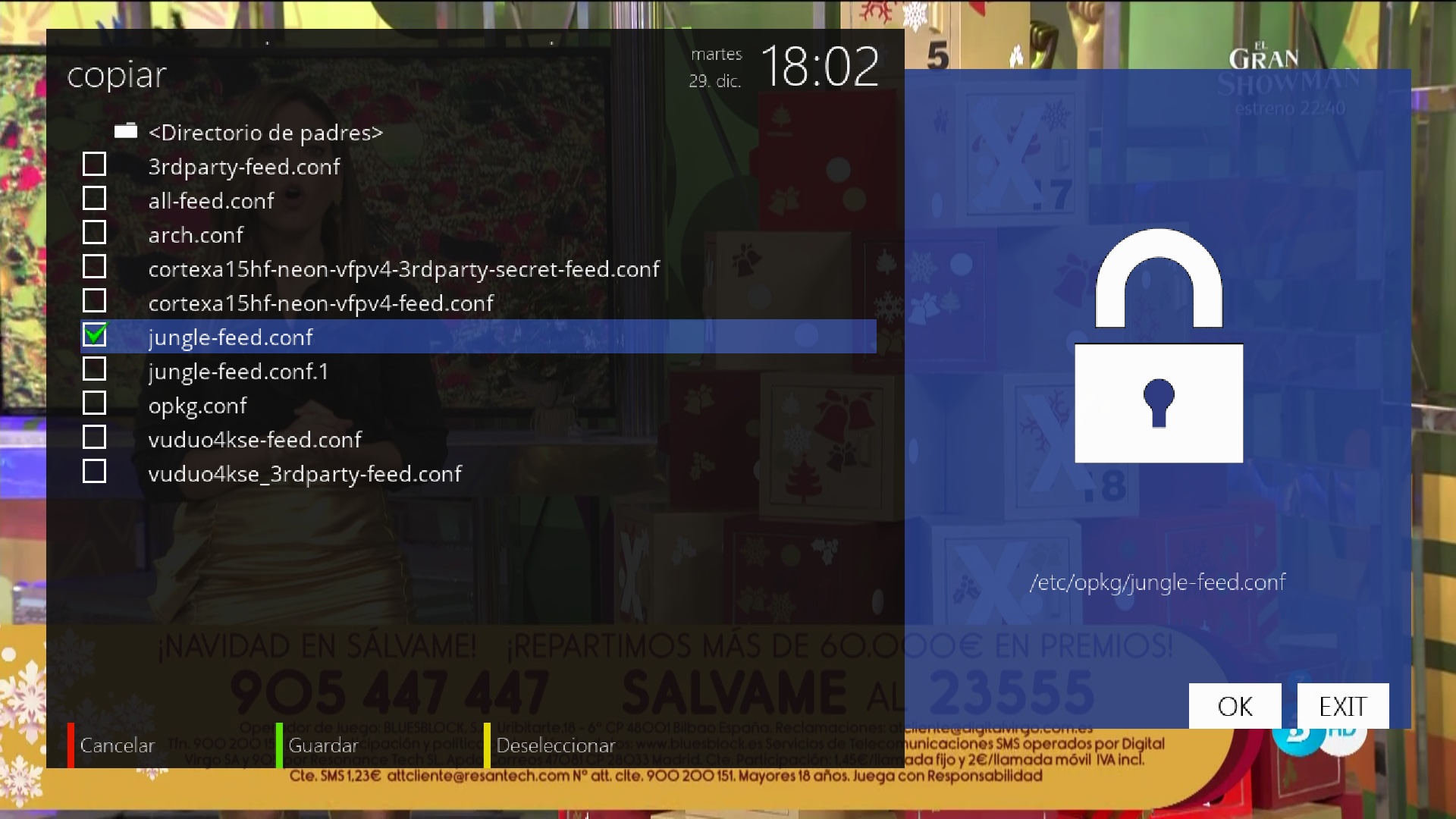 De este modo podemos tener una copia de seguridad de archivos que podemos restaurar en cualquier momento o durante el wizard de instalación de la imagen openatv tras instalar una imagen nueva.