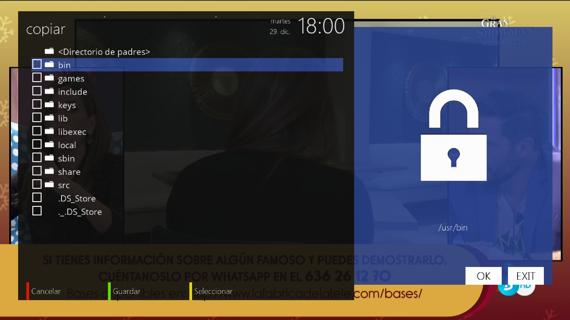 Ahora nos aparecera todas las carpetas y archivos de nuestro receptor, donde marcaremos los archivos que deseamos guardar.