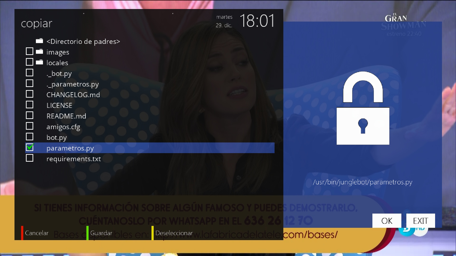 - /usr/bin/junglebot/parametros.py, el archivo de configuracion de junglebot