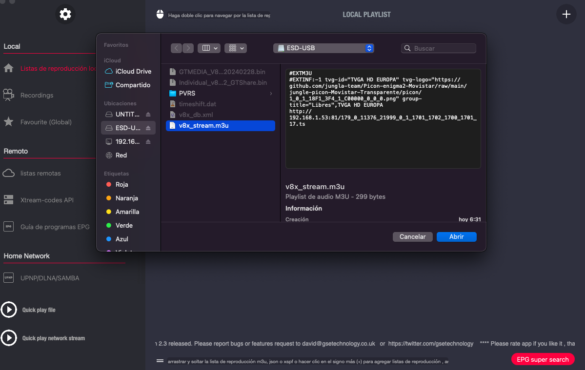 Esto implicara que en estas versiones de firmware que muestran el puerto mal, si generamos automaticamente un archivo .m3u el puerto este mal y veremos luego como cambiarlo de forma manual.