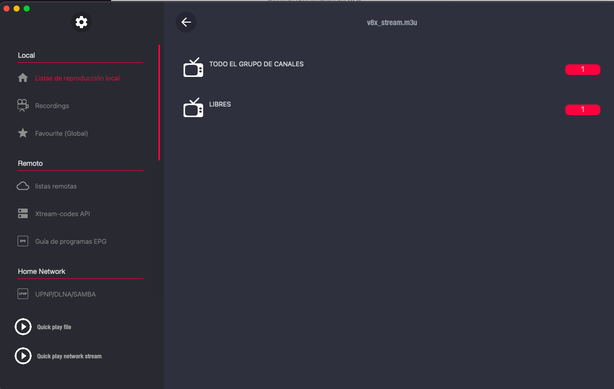 Ahora este archivo generado vamos a ver como visualizarlo, en este caso con un programa streaming de pc, donde en primer lugar añadimos el archivo m3u