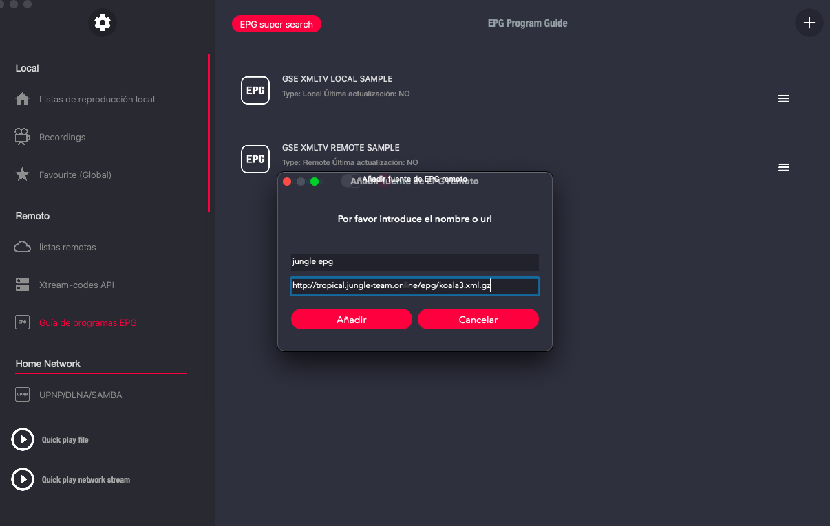 Vamos a ver como añadir el epg, para ello en la aplicacion que usemos compatible con este tipo epg añadimos la url: