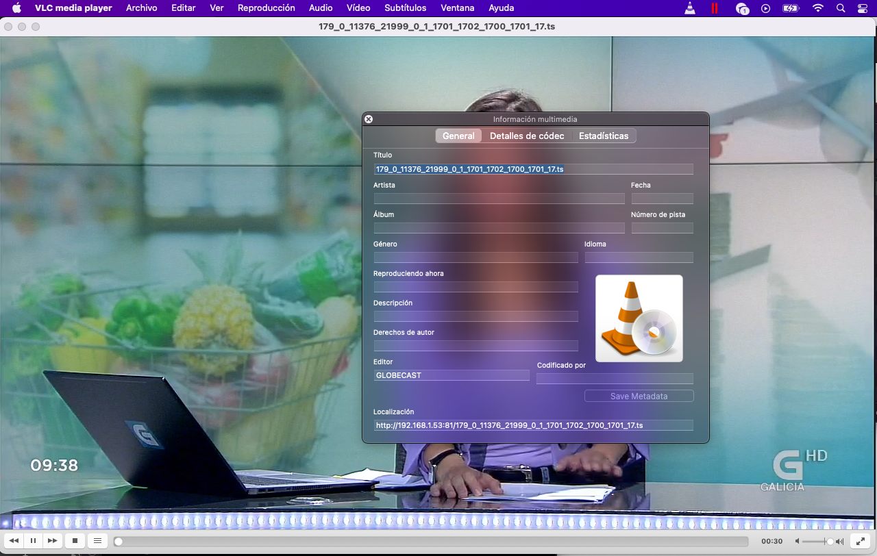 Una vez que ya conecemos la estructura de un canal en streaming, simplemente la url la colocariamos en algun programa visor en este ejemplo vlc y observariamos que se reproduce el canal: