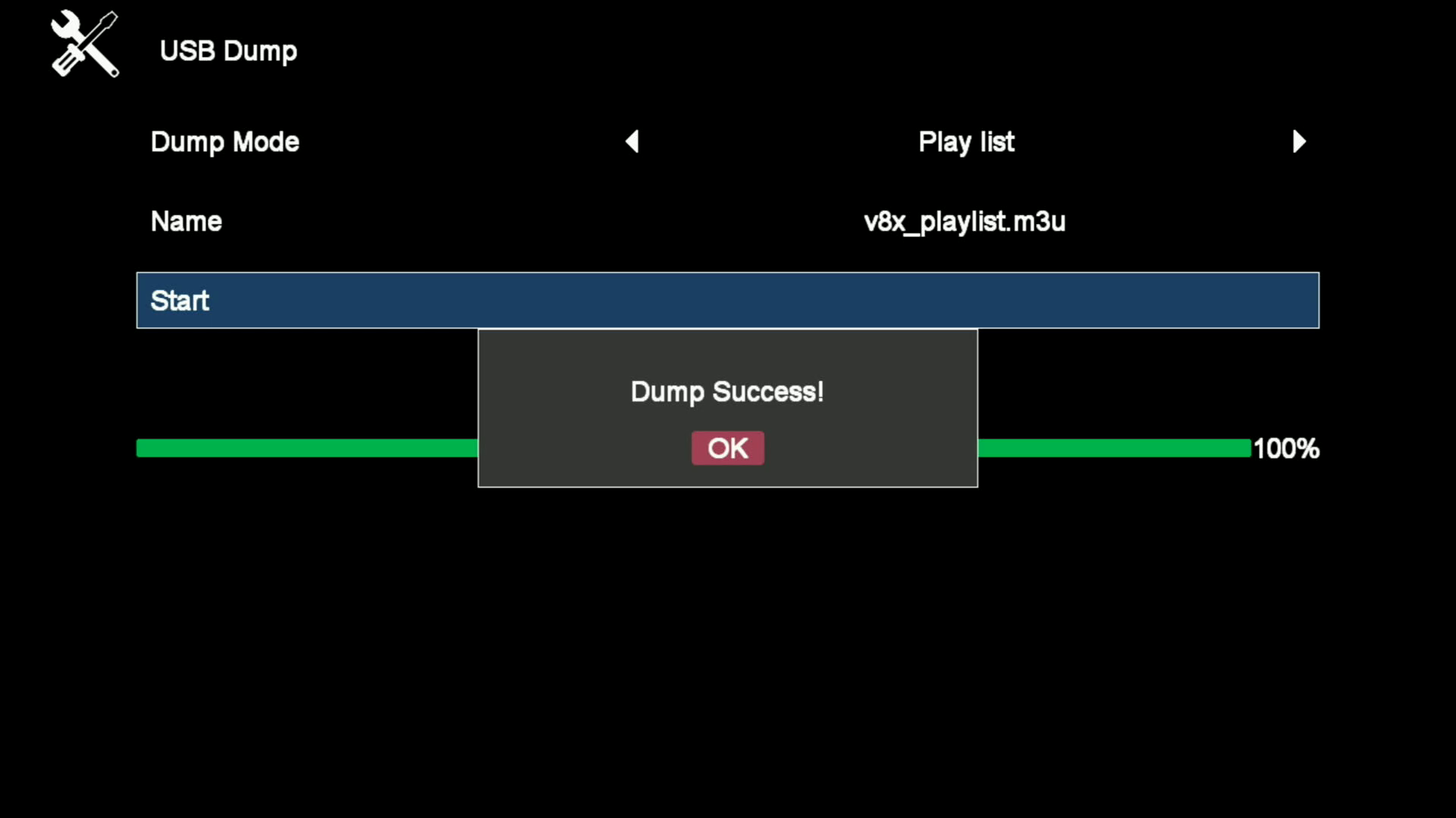 5.3. Ahora seleccionamos start y pulsamos ok para generar la lista m3u