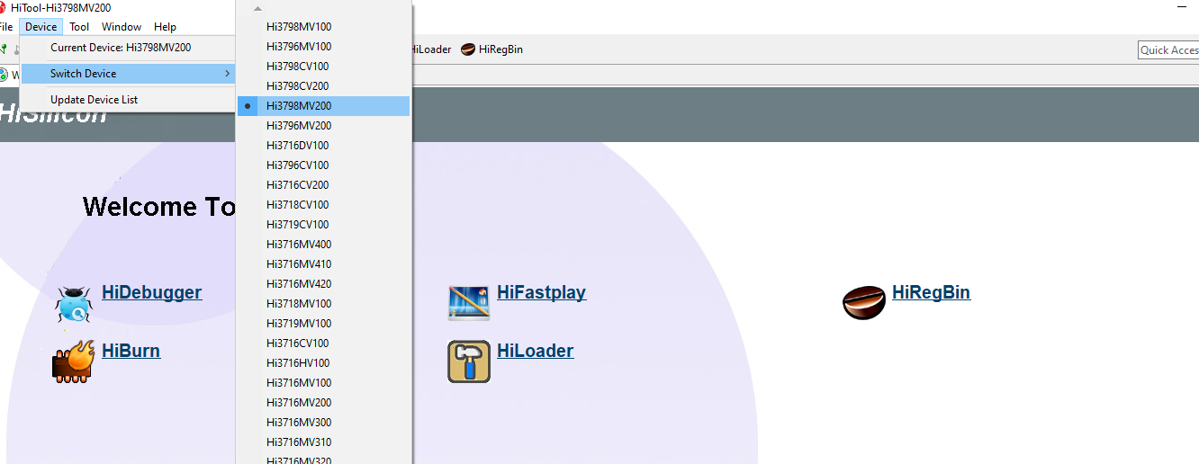 5. Abrimos el programa HiTools y en device debemos seleccionar la cpu de nuestro receptor en este caso HI3798MV200
