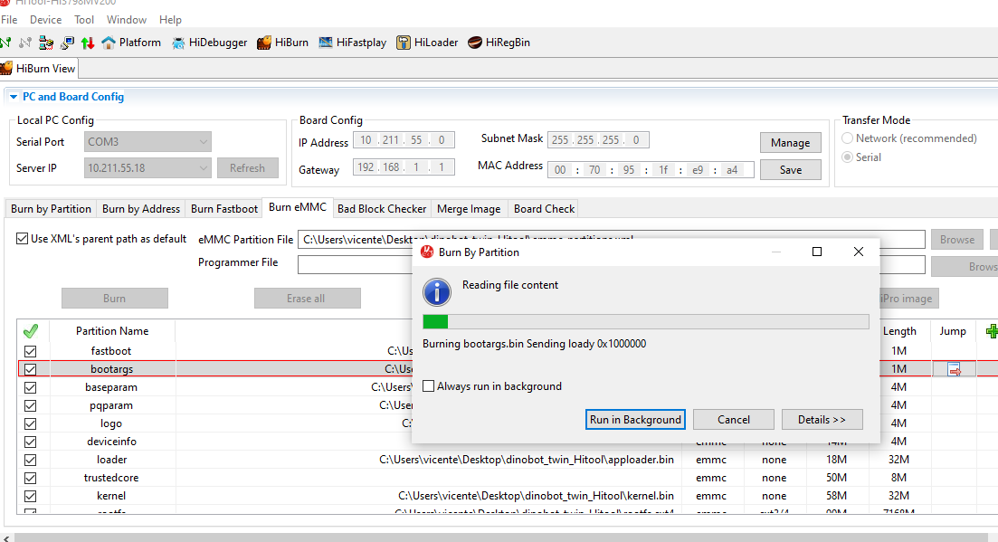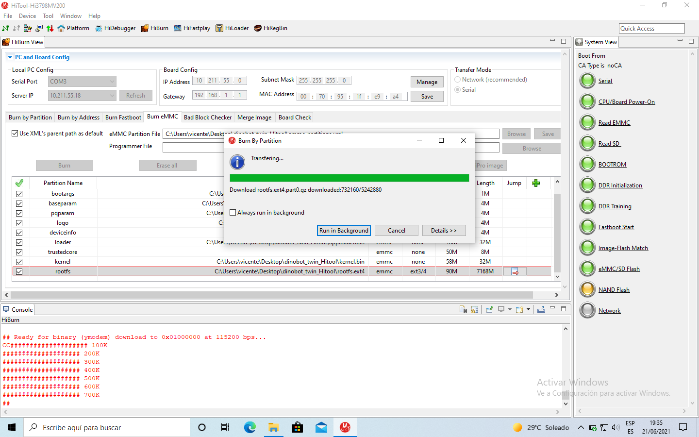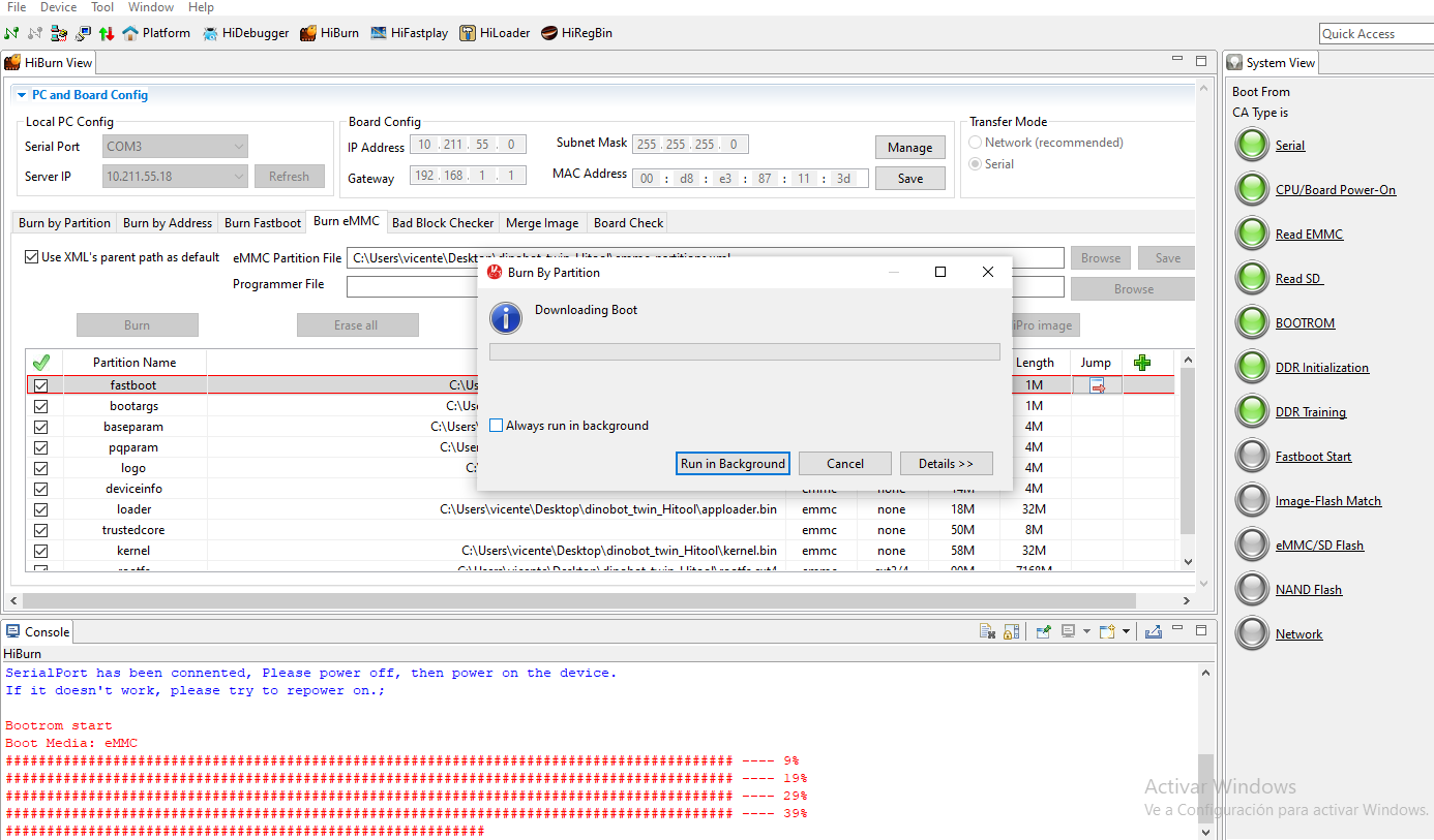 8. Pulsamos sobre browse y en la carpeta del firmware dinobot recovery seleccionamos emm_partitions