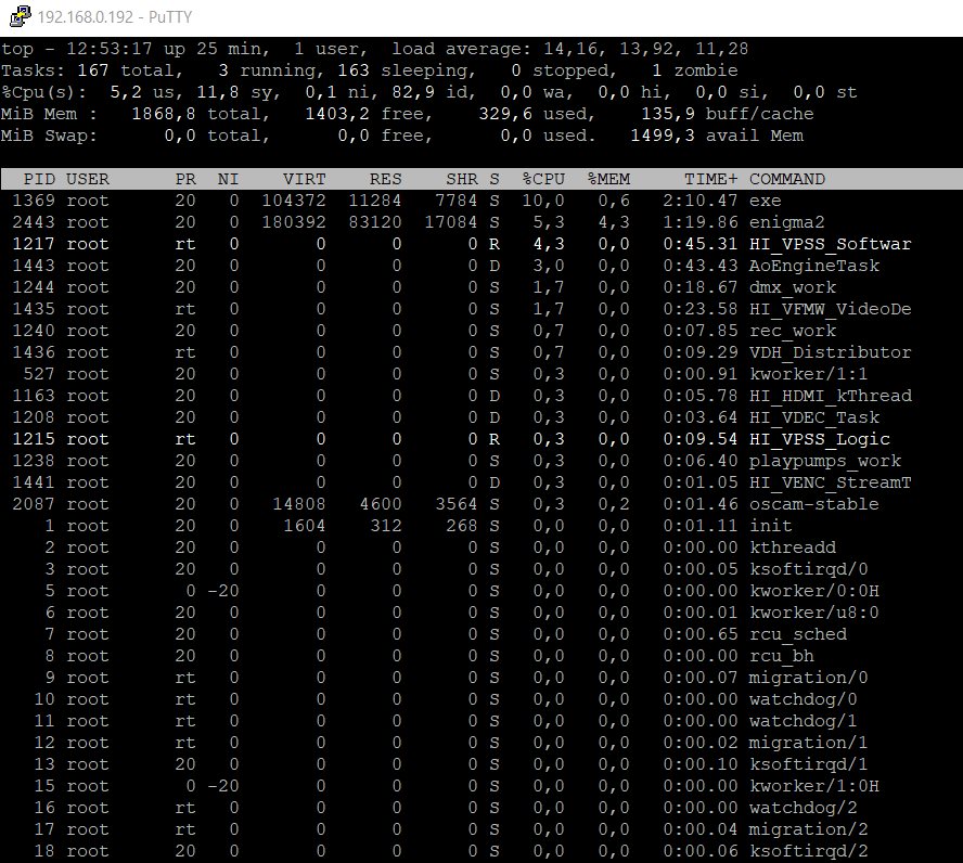 El sistema Enigma2 Reserva parte de los 2 GB de ram para sus procesos internos en esta captura podemos ver como se reparte: