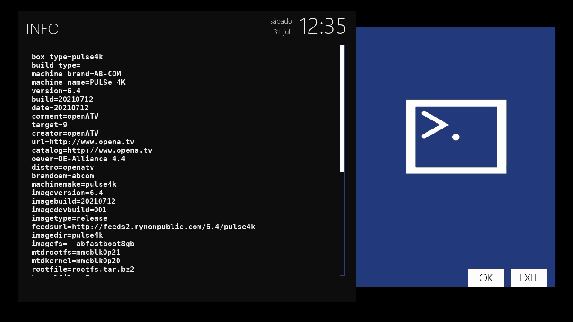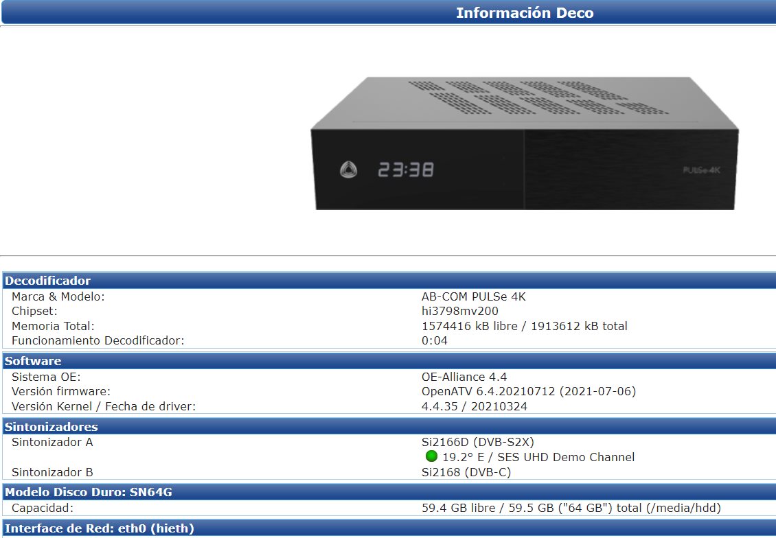 - Version del sistema de fabrica: OpenATV fecha depende de la fabricacion.