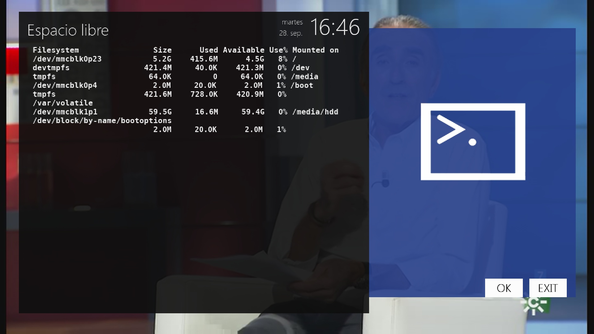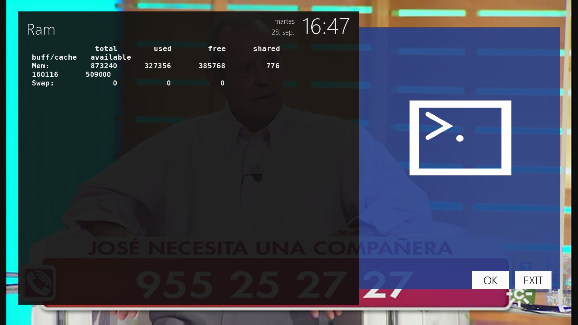 El sistema Enigma2 Reserva parte de los 1 GB de ram para sus procesos internos en esta captura podemos ver como se reparte: