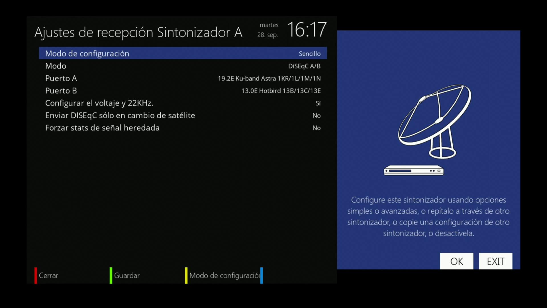Capturas de menu de configuracion tuner