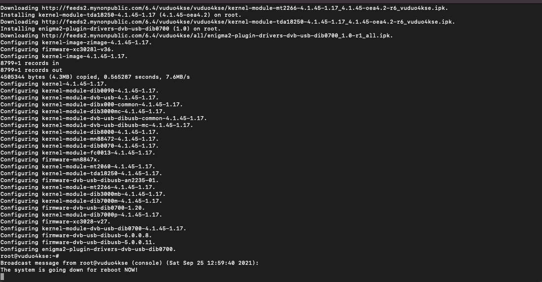 3. Una vez realizada la instalacion reiniciamos completamente el receptor.