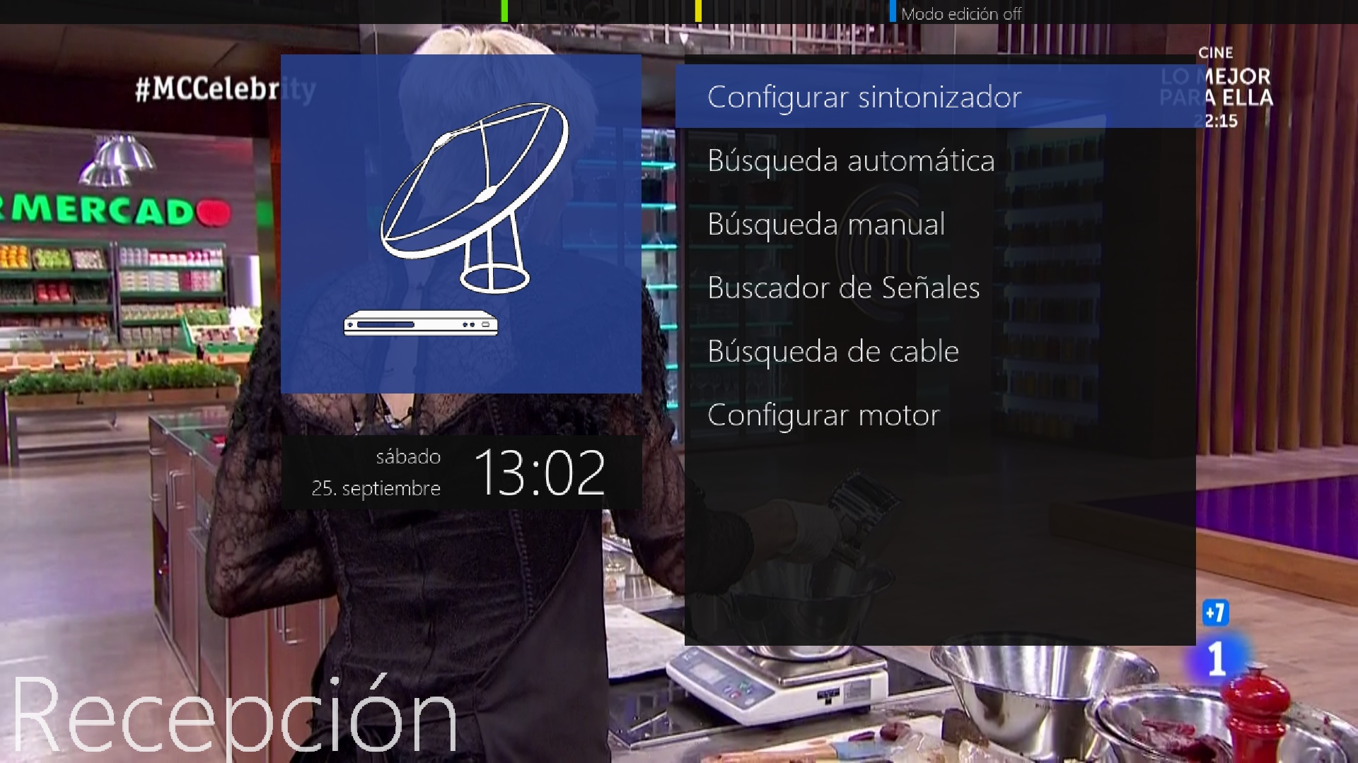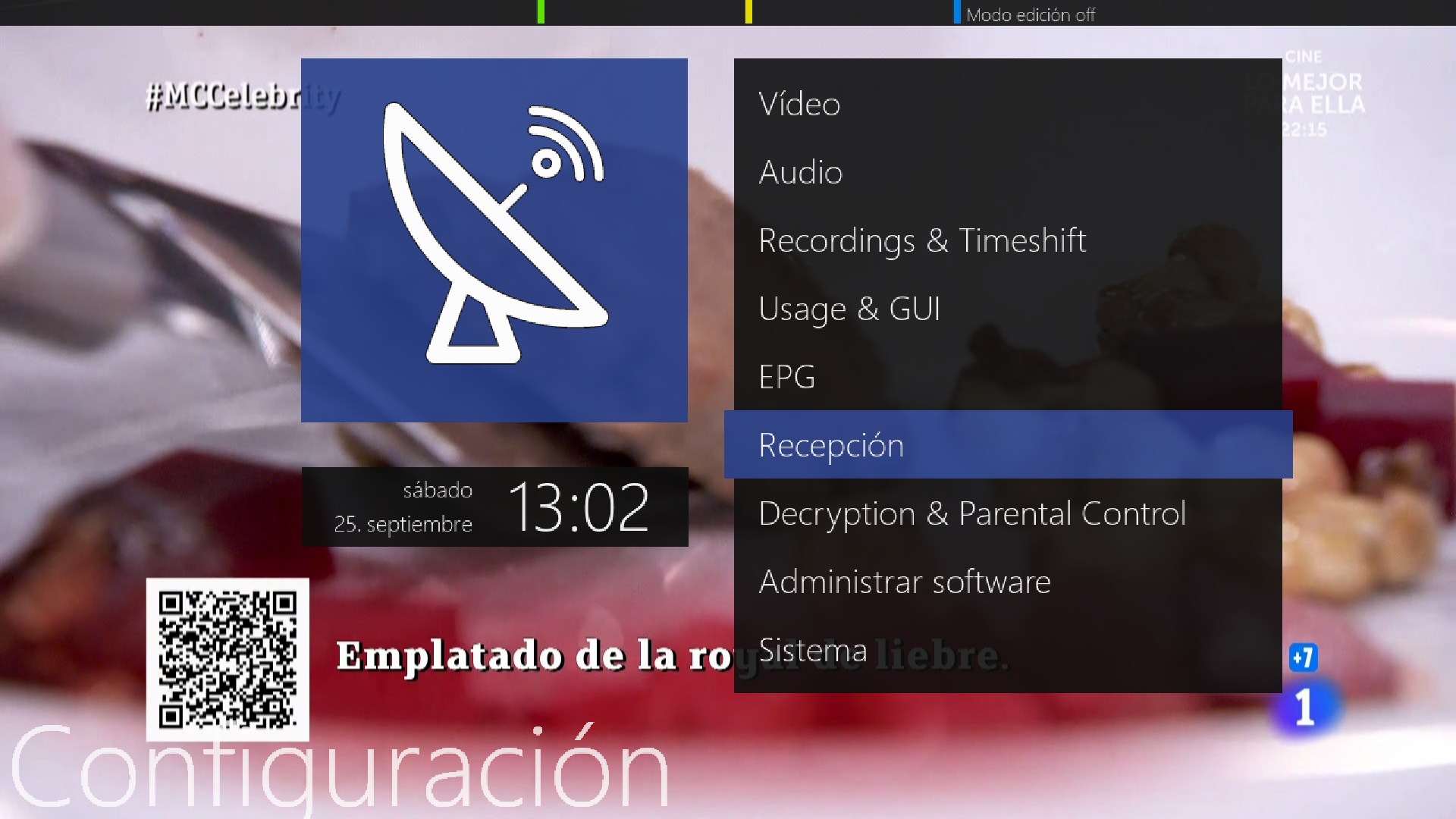 Una vez hemos realizado la instalacion de drivers en este caso en openatv, ahora la configuracion es muy sencilla, pulsamos en menu + Configuracion + Recepcion
