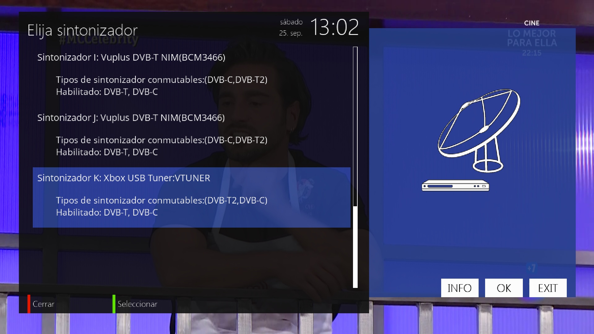 Hola compañeros hago todo cual poneis en el tutorial y a mi en mi Vu+Solo 2 con imagen Open Atv 7.3 no me reconoce el XBOX ONE DigitalTV Tuner.Mirad si me podeis ayudar por favor . Un saludo y muchas gracias.Tego en el mismo deco en Multiboot imagen Open Spa y me funciona perfectamente.