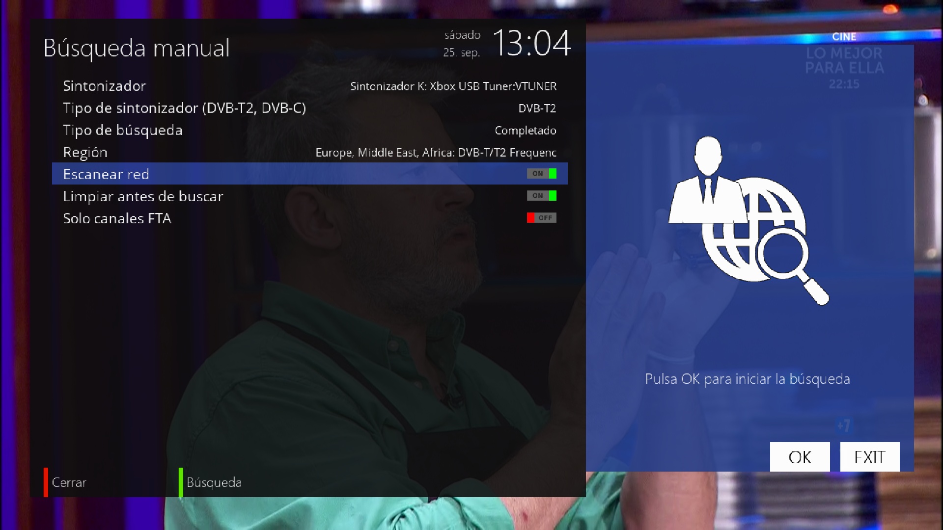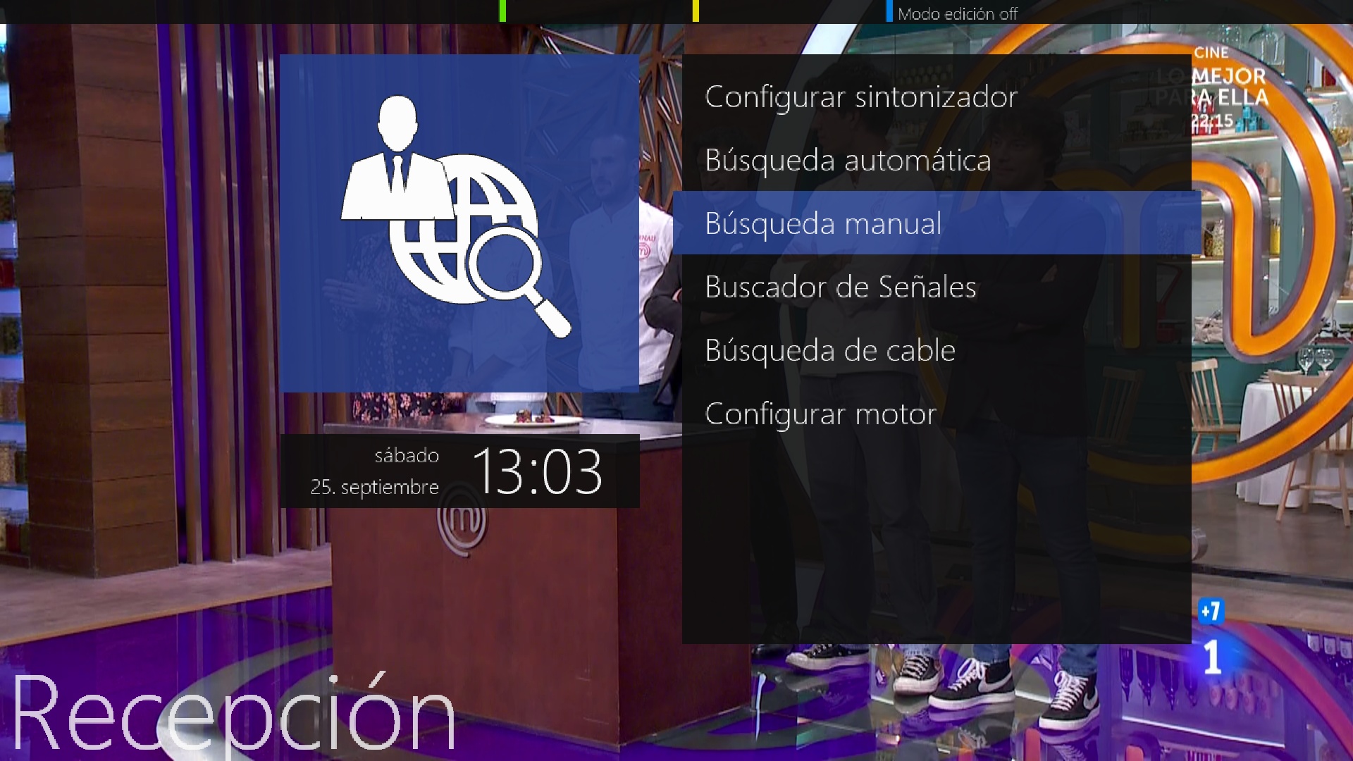 Una vez configurado el tuner, seleccionamos busqueda manual para realizar la busqueda de canales