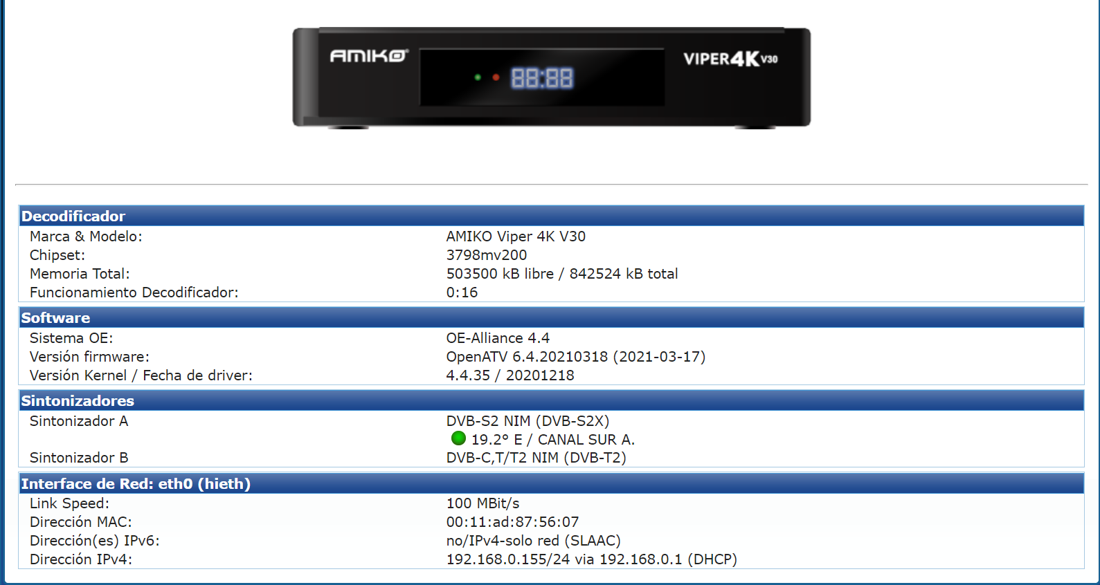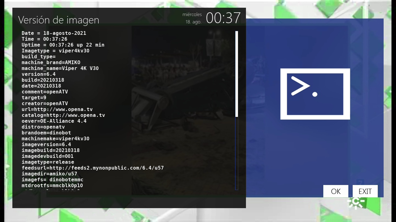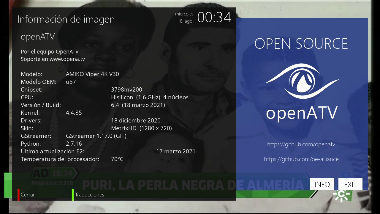 - Version del sistema de fabrica: OpenATV fecha depende de la fabricacion.