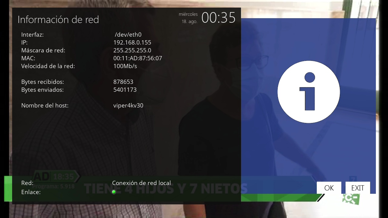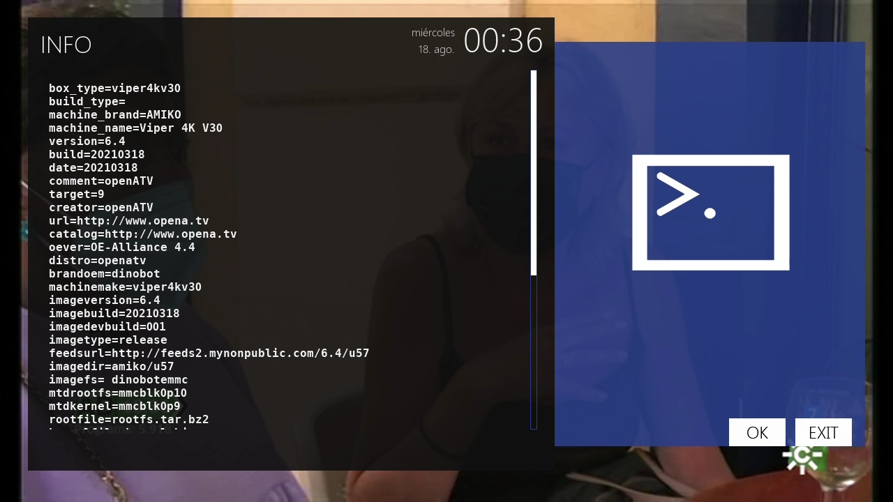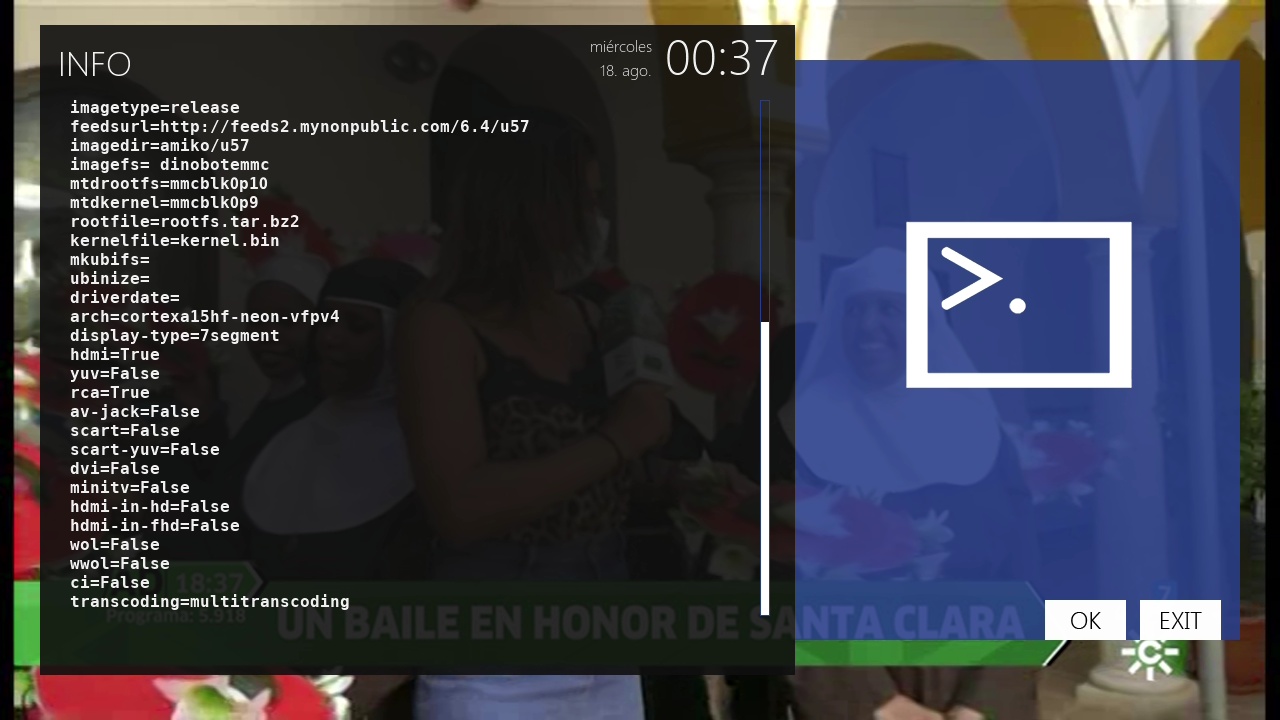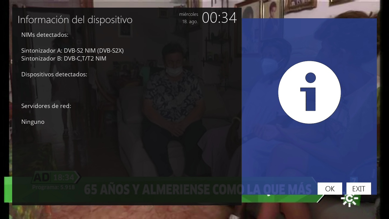 - Version del sistema de fabrica: OpenATV fecha depende de la fabricacion.