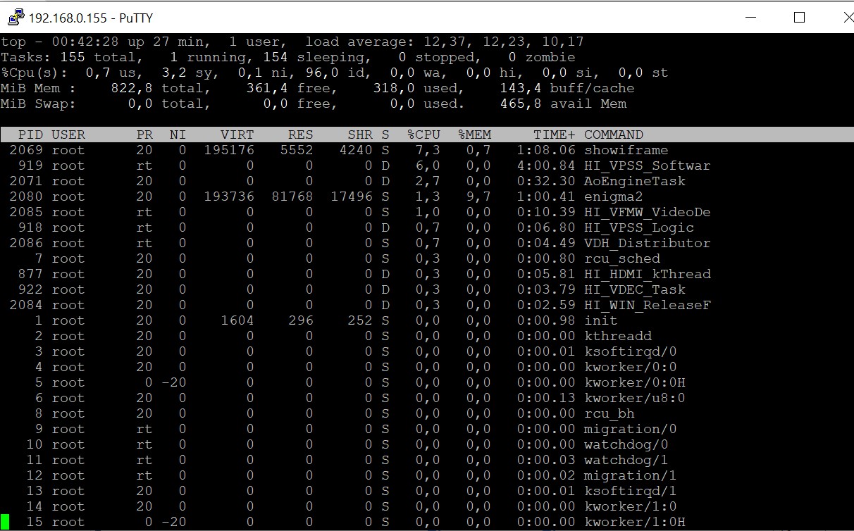 El sistema Enigma2 Reserva parte de los 1 GB de ram para sus procesos internos en esta captura podemos ver como se reparte: