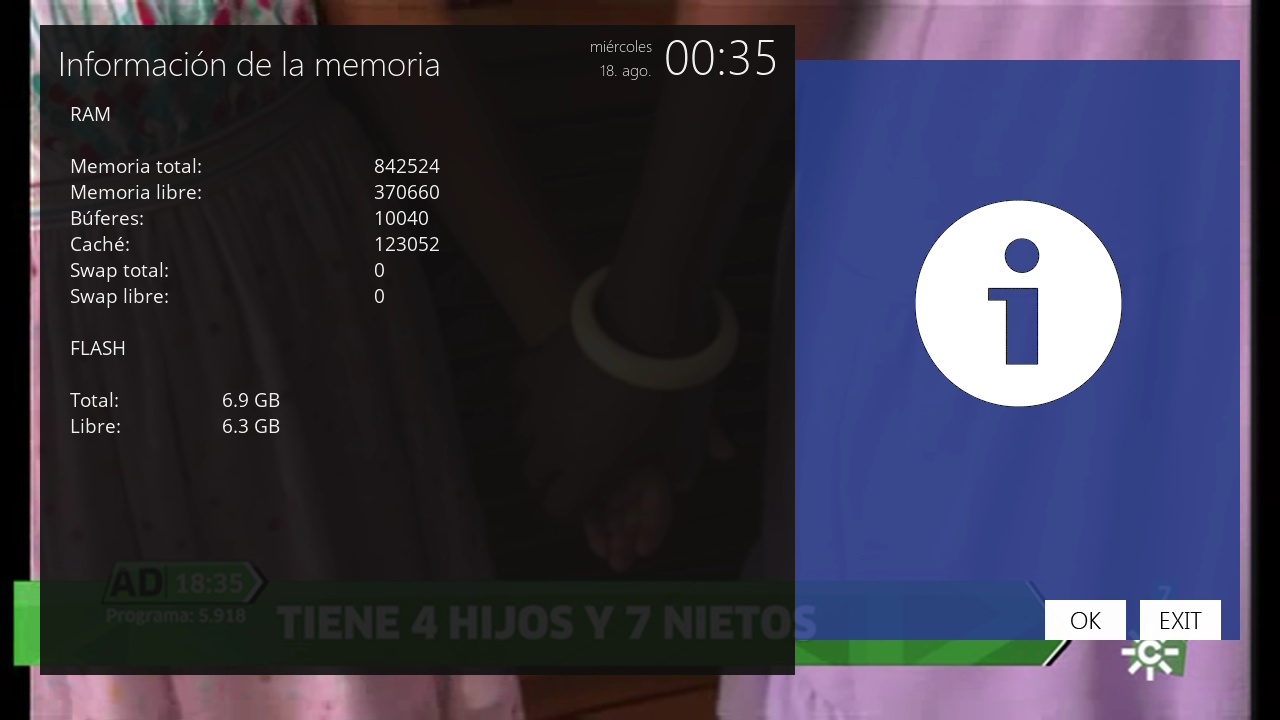 - Ram: Total de 1 gb ddr4 reservandose parte de ella para enigma2