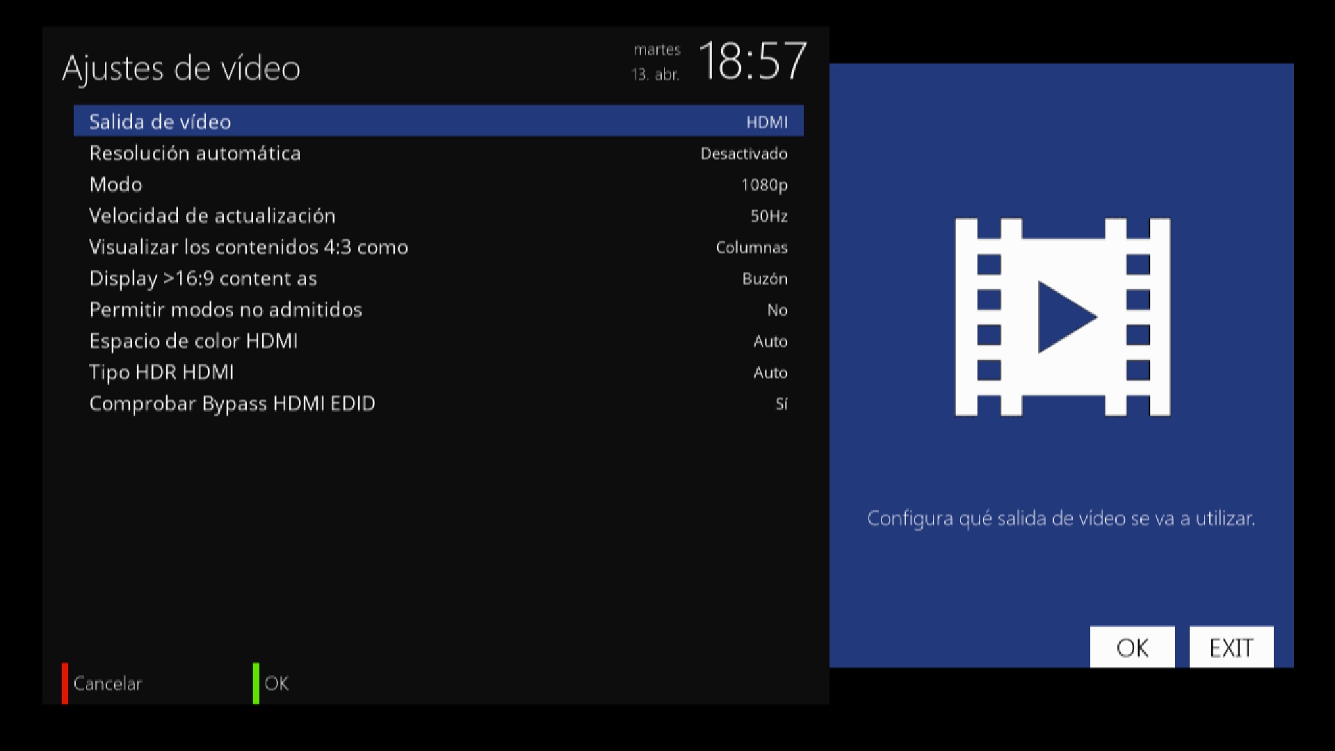 Un punto a favor del AX 4K Box HD61 es que el cambio de resolucion a HDR lo realiza el receptor automaticamente, cosa que no ocurre en otros receptores.
