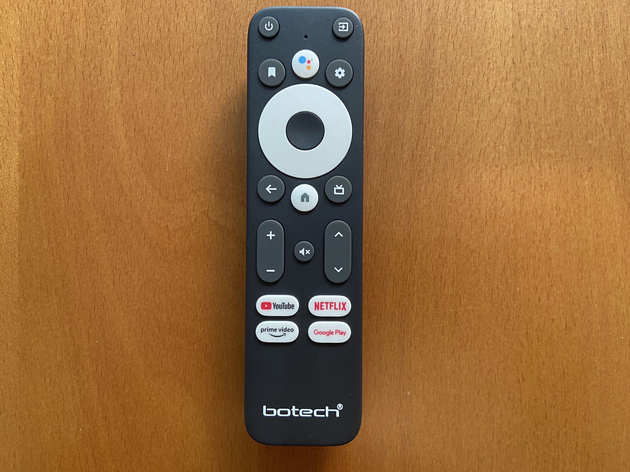 El mando a distancia del Botech WZONE 4K es tipo BT+IR con micro / Compatible con teclado y ratón / App de control para Android TV, bastante agradable al texto y con botones de acceso directo a varias plataformas digitales.