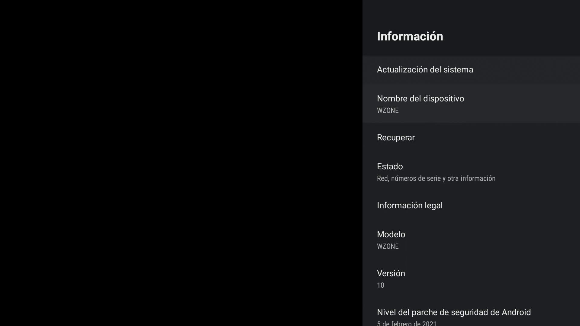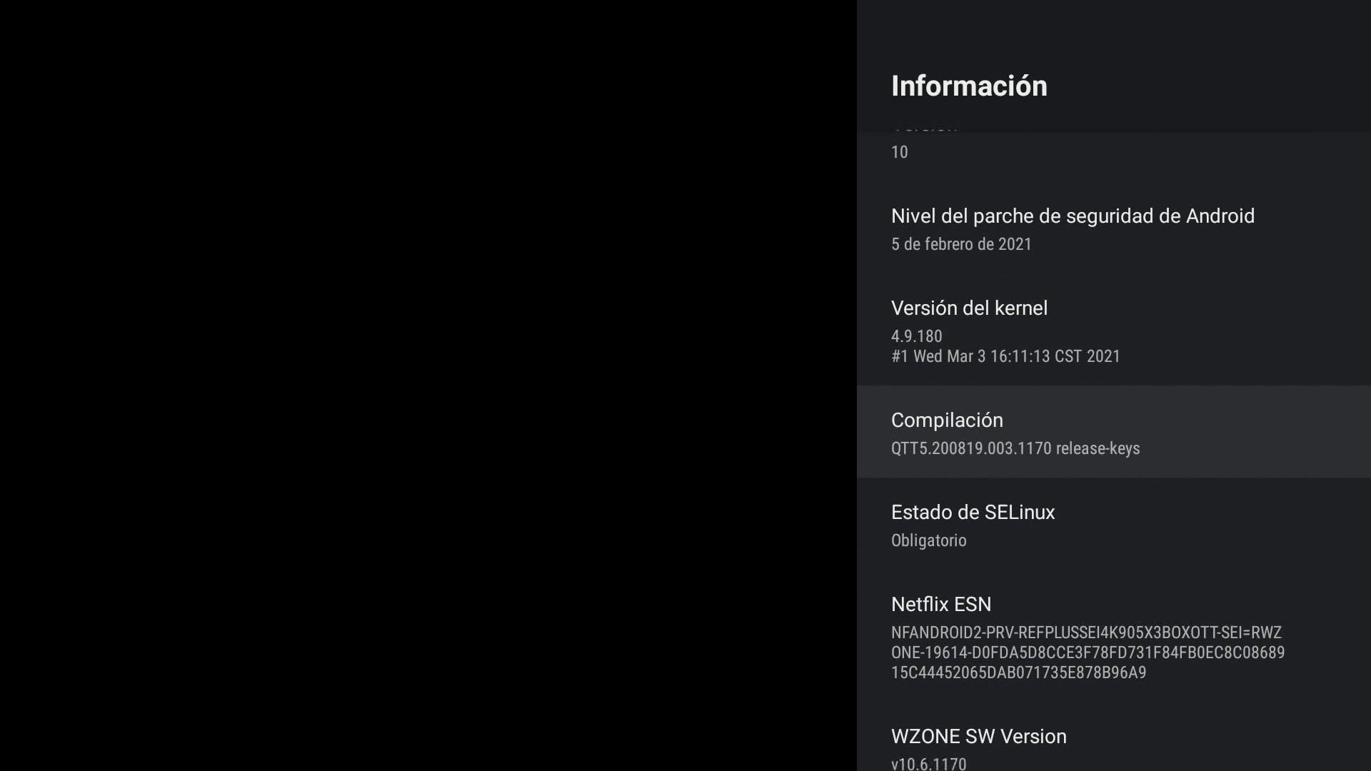 - Versión y root: Android TV 10 (32 bit) / NO Root / NO selector Root / CPU r1p0 (S905X3) / Model SEI600BT (HND.