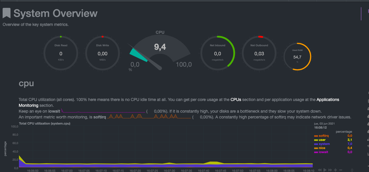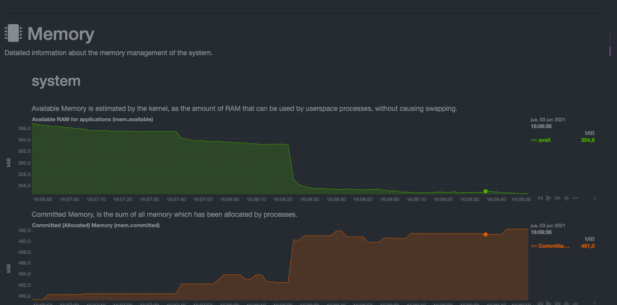 - Ram: Total de 1 gb ddr4 quedando libre 161 megas