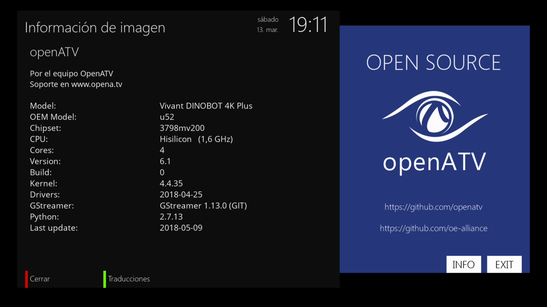 - Version del sistema de fabrica: OpenATV dependiendo del sistema de fabricacion, en nuestro caso version 6.1.