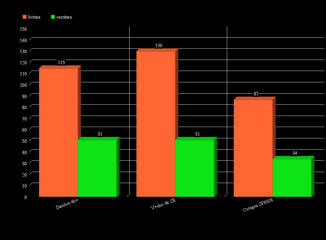 Leer y escribir 23/21 mb/s 72/30 mb/s 21/15 mb/s –